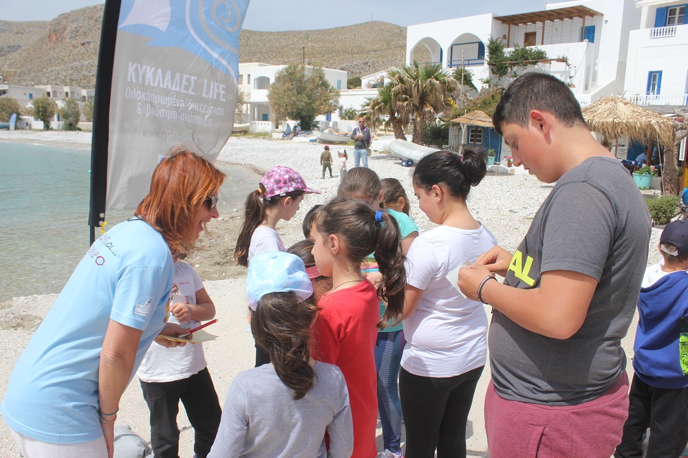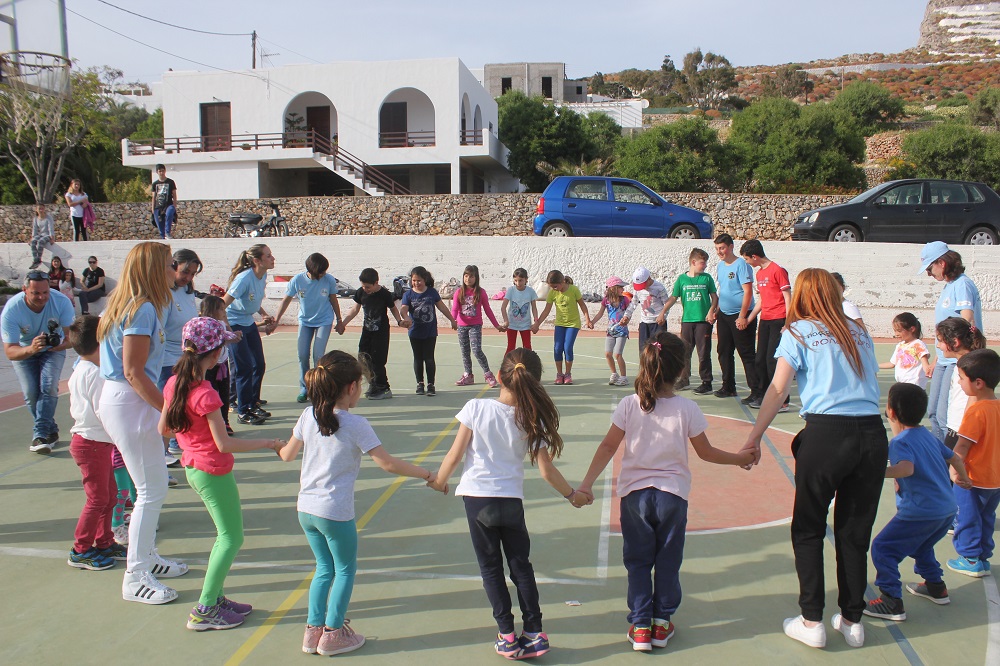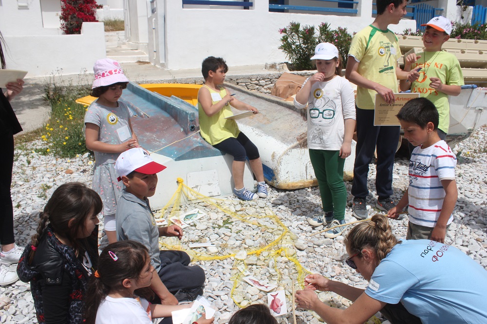 Λίγο αργότερα, στο Γήπεδο μπάσκετ, στο προαύλιο του Γυμνασίου – Λυκείου Φολεγάνδρου πραγματοποιήθηκε η παιδαγωγική δράση «Το παράσημο της αγάπης», στην οποία περισσότερα από 35 παιδιά παρακολούθησαν μία θαλασσινή, διαδραστική ιστορία, βασισμένη στην προστασία της θάλασσας και τη σημασία της προσφοράς και της ομαδικότητας.