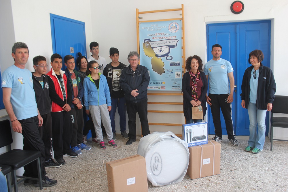 Μεγάλο ήταν το χαμόγελο και των προϊσταμένων των τριών σχολείων της Φολεγάνδρου (Νηπιαγωγείου, Δημοτικού και Γυμνασίου – Λυκείου» στα οποία παραδόθηκε υλικός εξοπλισμός, όπως ρολόγια τοίχου, αφυγραντήρας, tablet και μουσικά όργανα παρέλασης) που προσέφεραν χορηγοί από τη Σύρο. Υπογραμμίζεται μάλιστα ότι οι μαθητές του Γυμνασίου – Λυκείου είχαν την τύχη να κάνουν πρόβα στα όργανα μαζί με τον πρόεδρο του Ομίλου, Τάσο Ρούσσο, εξπέρ στα κρουστά. Αναλυτικό ρεπορτάζ σχετικά με τις ανάγκες και το έργο των σχολικών μονάδων του νησιού θα πραγματοποιηθεί σε επόμενο δημοσίευμα της εφημερίδας.