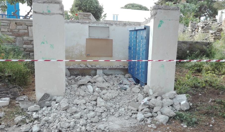 Όπως αποτυπώνεται και στο σχετικό φωτογραφικό υλικό, σε τρία βασικά σημεία τόσο στα Χρούσσα, όσο και στην περιοχή του Βροντάδου αναπτύσσονται εργασίες καθαίρεσης της οροφής των στάσεων, προκειμένου να κατασκευασθούν νέες, με κύριο σκοπό την προάσπιση της σωματικής ασφάλειας των πολιτών που αναμένουν την επιβίβασή τους στα λεωφορεία που καλύπτουν τις δρομολογιακές γραμμές της Σύρου σε καθημερινή βάση.