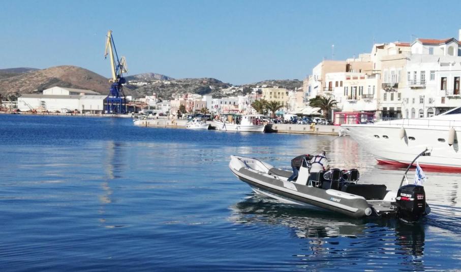 Η συριανή συμμετοχή της Ομάδας Αιγαίου ξεκίνησε νωρίς το πρωί της Πέμπτης το ταξίδι της από το λιμάνι της Ερμούπολης, προκειμένου να συναντήσει την πολυάριθμη αποστολή φουσκωτών σκαφών, ανοικτά της Σύρου, στο πλαίσιο της πραγματοποίησης του 23ου Διάπλου Αιγαίου Πελάγους.