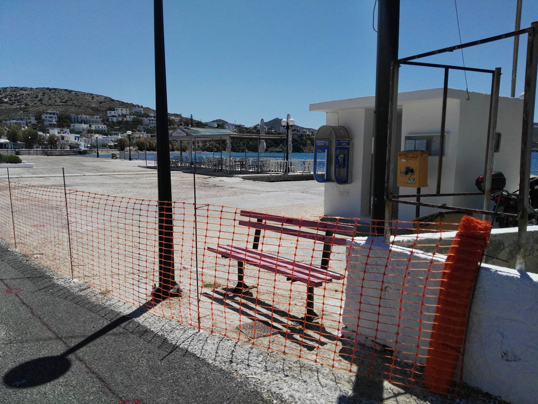 Συγκεκριμένα, από χθες το πρωί οριοθετήθηκε ο χώρος της πλατείας του χωριού, με ειδική πλαστική περίφραξη ώστε να μην εισέρχονται οχήματα και δίκυκλα, ενώ επιπρόσθετα, τοποθετήθηκαν ειδικές βάσεις για την περίφραξη, αλλά και οριοθετήθηκε με κόκκινη διαγράμμιση το τμήμα επί του οποίου θα αναπτυχθούν οι εργασίες.