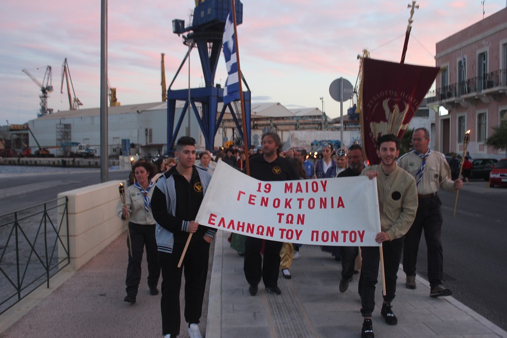 Στο πλαίσιο των επετειακών εκδηλώσεων, ο «Εύξεινος Πόντος» πραγματοποίησε το βράδυ της Παρασκευής την καθιερωμένη λαμπαδηφορία στο κέντρο της Ερμούπολης, με την ενεργή συμμετοχή μελών του 4ου Συστήματος Ναυτοπροσκόπων Σύρου.
