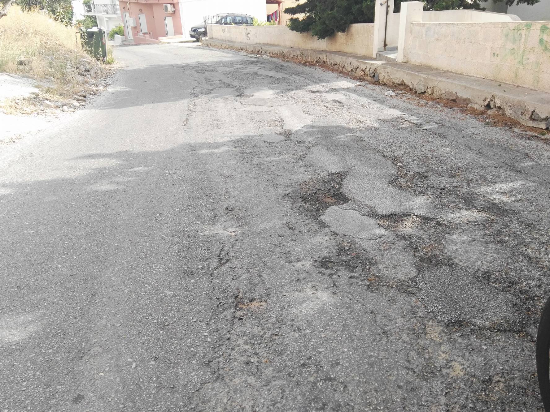 Λακκούβες, αποκόλληση τμημάτων και ανομοιομορφίες του οδοστρώματος παρατηρούνται κατά μήκος του δρόμου, με τον κ. Στρογγύλη να επισημαίνει πως, η συγκεκριμένη εικόνα, προδίδει προφανώς μη ύπαρξη ελέγχου από τη Δημοτική Αρχή, αλλά ακόμη και μη ικανοποιητική αποκατάσταση, σε περίπτωση που κάποιο έργο ανήκει στον Δήμο.