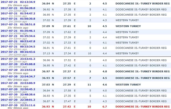 Με ιδιαίτερη προσοχή παρακολουθούν οι σεισμολόγοι τη μετασεισμική ακολουθία στην Κω μετά τον ιδιαίτερα ισχυρό σεισμό μεγέθους 6,7 βαθμών της κλίμακας Ρίχτερ που έπληξε το νησί στη 01:31 τα ξημερώματα της Παρασκευής (21/07/2017), με τον σεισμολόγο και διευθυντή του Γεωδυναμικού Ινστιτούτου του Εθνικού Αστεροσκοπείου Αθηνών Άκη Τσελέντη να επισημαίνει, ωστόσο, ότι μέσα στα επόμενα εικοσιτετράωρα θα υπάρξουν ισχυροί μετασεισμοί.