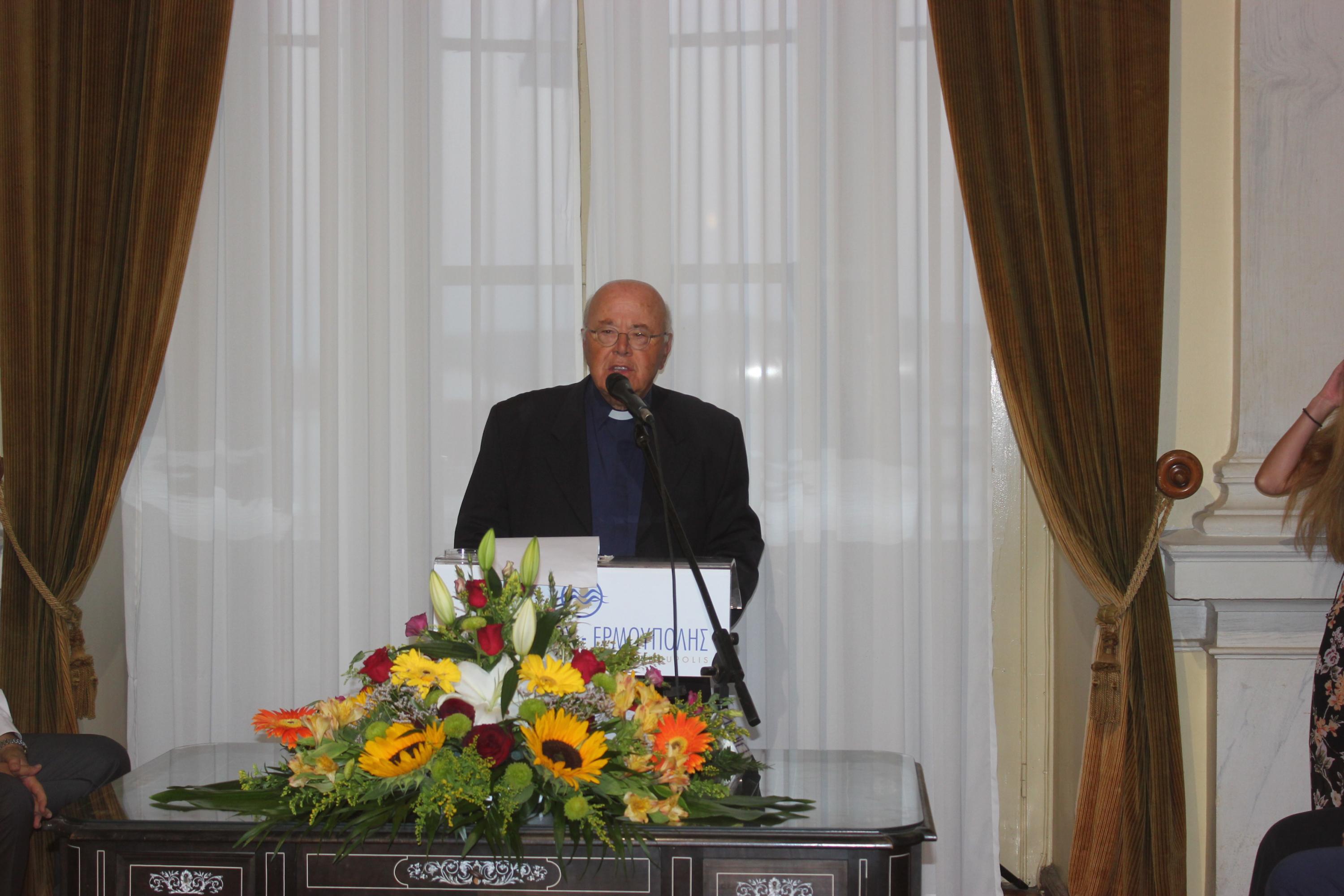 Η λιτή τελετή ολοκληρώθηκε με τους χαιρετισμούς του εκπροσώπου της Καθολικής Εκκλησίας, π. Αντώνη και της Περιφέρειας Ν. Αιγαίου, Μ. Δαδάου.