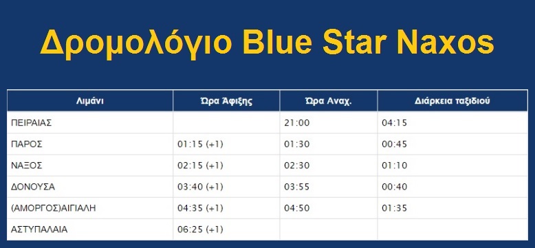 Από την εταιρεία ανακοινώθηκε, πως τουλάχιστον για σήμερα το βράδυ, το προγραμματισμένο δρομολόγιο του Blue Star Patmos θα εκτελεστούν από το Blue Star Naxos.