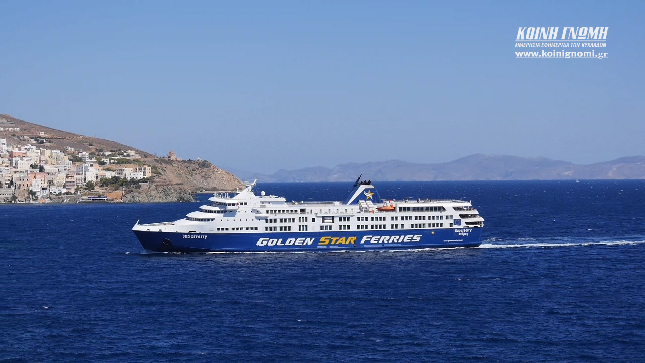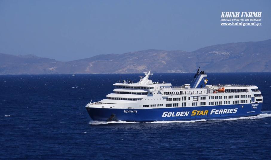 Το πρώτο δρομολόγιό του στη γραμμή “Πειραιάς – Σύρος – Τήνος – Μύκονος” εκτέλεσε σήμερα το πρωί το πλοίο Superferry της εταιρείας Golden Star Ferries, το οποίο και ανέλαβε την εξυπηρέτηση του επιβατικού κοινού μετά τις αλλαγές που προκλήθηκαν στις δρομολογιακές γραμμές από την προσάραξη του Blue Star Patmos στο λιμάνι της Ίου.