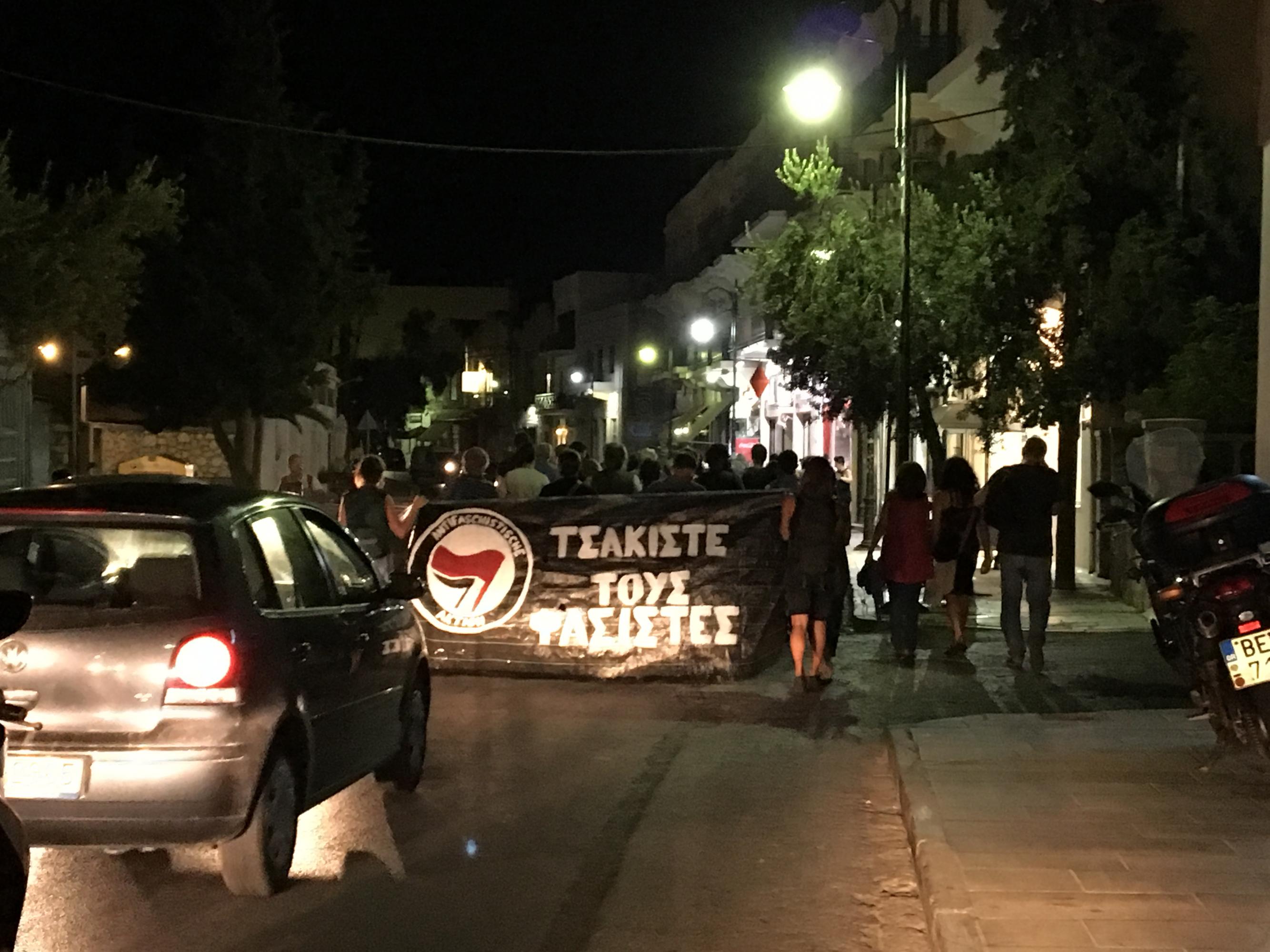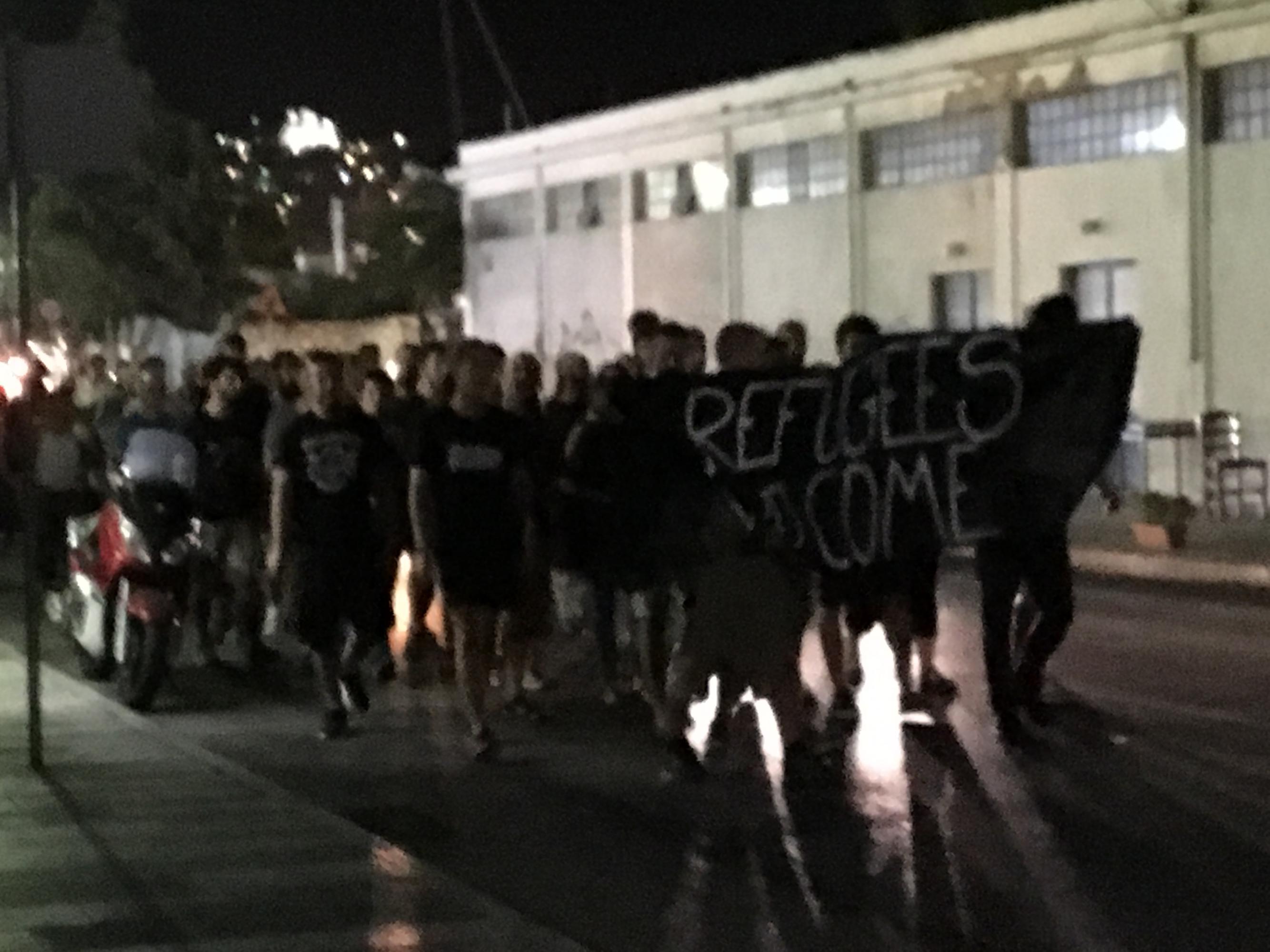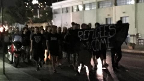 Πορεία αντιφασιστών με πανό και συνθήματα ("Τσακίστε τους φασίστες", "Refugees Welcome" πραγματοποιείται αυτή την ώρα και στους δρόμους της Ερμούπολης με ατεύθυνση προς το Κολυμβητήριο, όπου φιλοξενούνται οι 53 πρόσφυγες.