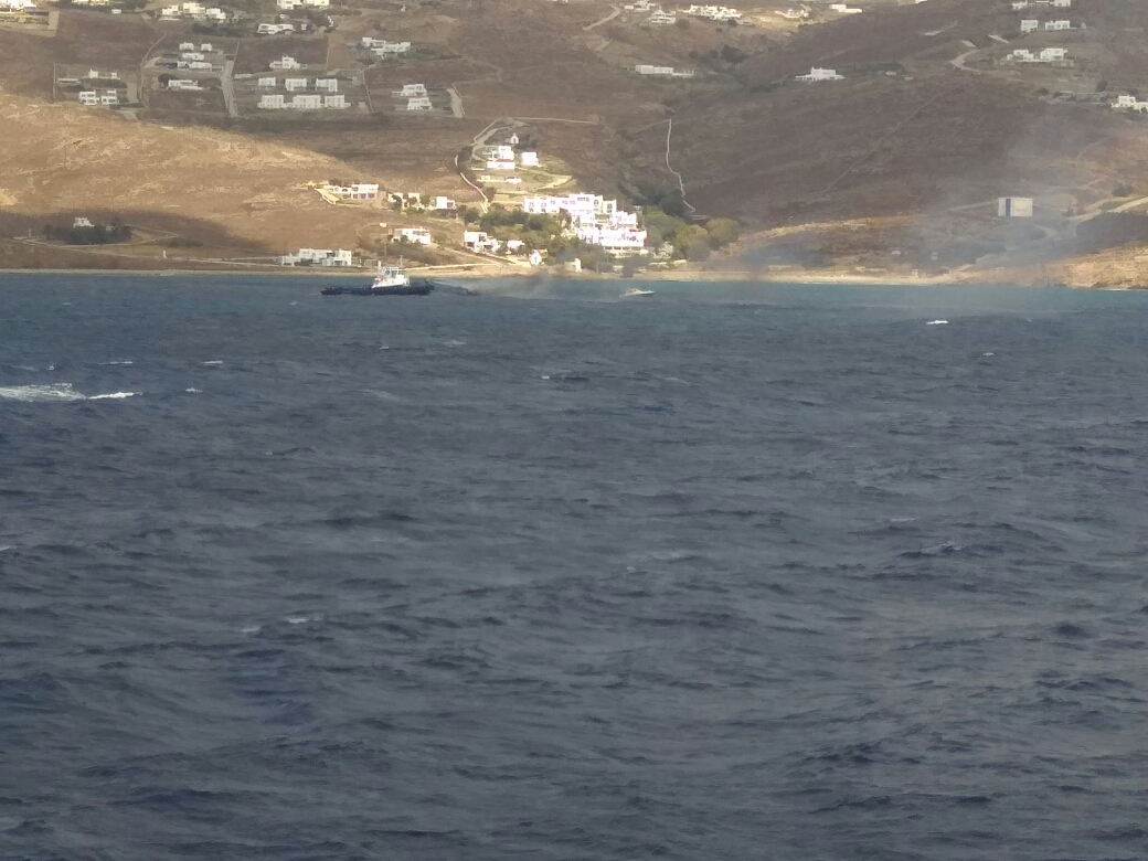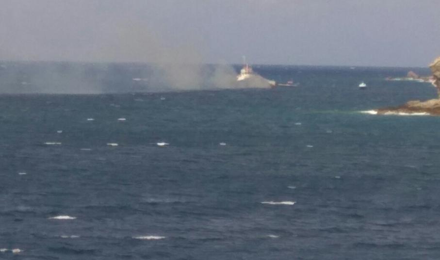 Άμεση ήταν η επέμβαση ρυμουλκού, το οποίο προσέγγισε το φλεγόμενο σκάφος για να θέσει υπό έλεγχο την κατάσταση.