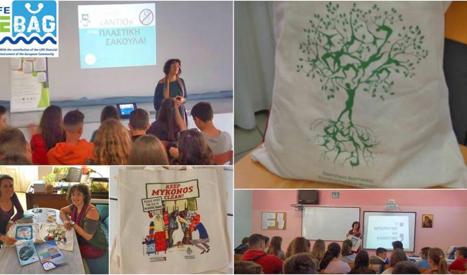 1.000 περίπου μαθητές ενημερώθηκαν στη Μύκονο για τις επιπτώσεις της πλαστικής σακούλας και τις εναλλακτικές της, από τις επισκέψεις Περιβαλλοντικής Εκπαίδευσης του προγράμματος LIFE DEBAG, που υλοποιεί το Δίκτυο ΜΕΣΟΓΕΙΟΣ SOS.