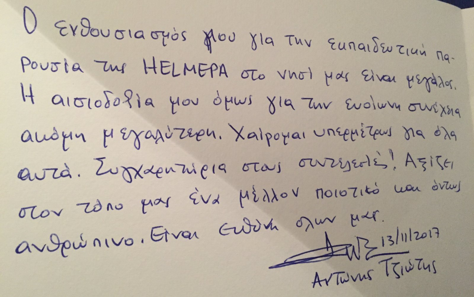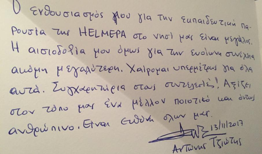 Η HELMEPA ευχαριστεί το Σύλλογο Φιλωτιτών Νάξου-Βιβλιοθήκη Ανωμερίτη για τη φιλοξενία της Έκθεσης, το Δήμο Νάξου που έθεσε την Εκστρατεία υπό την αιγίδα του και συνέδραμε στον προγραμματισμό των επισκέψεων σχολείων στην Έκθεση, τη Διεύθυνση Πρωτοβάθμιας Εκπαίδευσης Κυκλάδων για τη συνεργασία καθώς και τους μαθητές και εκπαιδευτικούς του Φιλωτίου και όλης της Νάξου που με τη θερμή τους ανταπόκριση στα μηνύματα της Εκστρατείας, μας γεμίζουν ελπίδα για ένα καλύτερο αύριο.