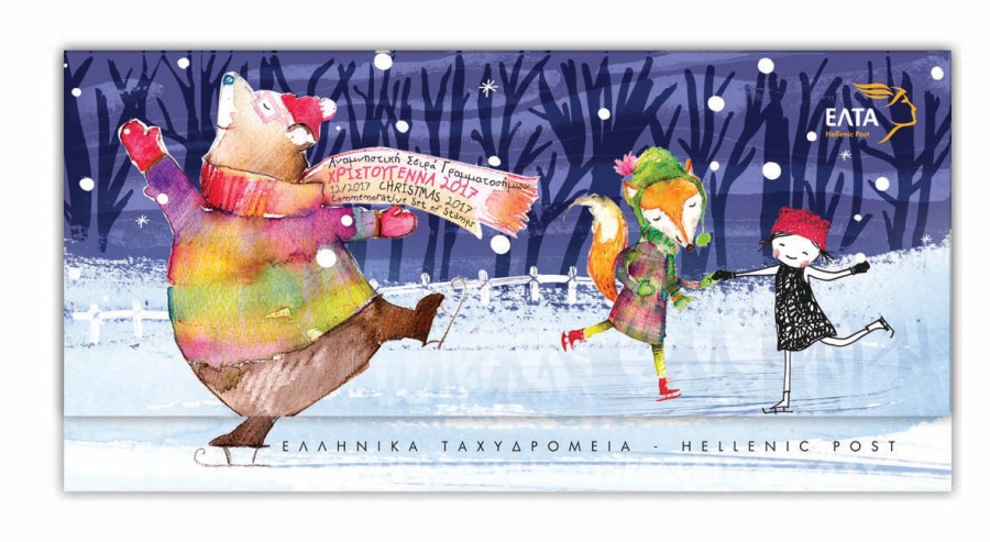 Η χριστουγεννιάτικη σειρά γραμματοσήμων των Ελληνικών Ταχυδρομείων μας ταξιδεύει σε ένα χιονισμένο ονειρικό τοπίο γεμάτο χιονονιφάδες, γιρλάντες και πολύχρωμα λαμπιόνια. Ένα ατέλειωτο χριστουγεννιάτικο παιχνίδι στήνεται στη γιορτινή ατμόσφαιρα, εκεί που τα γέλια των παιδιών μπερδεύονται με τα τιτιβίσματα των πουλιών και τα κάλαντα των Χριστουγέννων. Τους μικρούς μας φίλους συντροφεύουν στη γιορτινή τους διασκέδαση ένας πιγκουίνος Βασιλιάς, ένας αγιοβασιλιάτικος αρκούδος, ένα στολισμένο ελαφάκι και ένας παιχνιδιάρης σκίουρος. Ένα φανταστικό σκηνικό που μας μεταφέρει τη μαγεία των Χριστουγέννων μέσα από τα μάτια των παιδιών. Ποιος μπορεί εξάλλου να μας διδάξει καλύτερα την αγάπη εκτός από τα παιδιά;