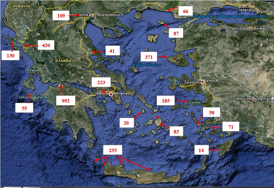 Σε ότι αφορά στις περιοχές με τη μεγαλύτερη επιχειρησιακή δραστηριότητα, στις οποίες εκδηλώθηκε ο κύριος όγκος των σοβαρότερων περιστατικών - συμβάντων που είτε συντόνισε και διαχειρίστηκε είτε επόπτευσε το ΚΕΠΙΧ/ΛΣ-ΕΛ.ΑΚΤ., παρατηρείται ότι το σύμπλεγμα των Κυκλάδων συγκεντρώνει ιδιαίτερα μικρό αριθμό περιστατικών, συγκριτικά με άλλες περιοχές της χώρας.