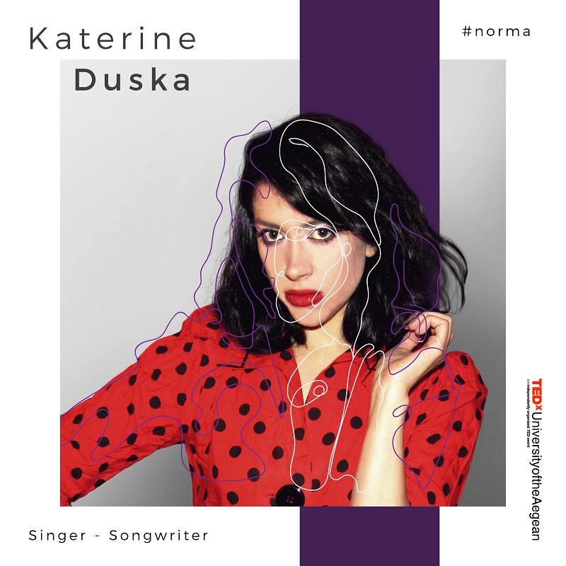 Δεύτερη, θα ανέβει στη σκηνή η Κατερίνα Ντούσκα, η οποία γεννήθηκε και μεγάλωσε στο Μόντρεαλ του Καναδά, όπου και πρωτοανακάλυψε το πάθος της για τη μουσική, κυρίως μέσα από pop, rock, r&b, soul και jazz ακούσματα. Έχει σπουδάσει μοντέρνο και κλασικό τραγούδι .Το 2013 πρωτοεμφανίστηκε στην εγχώρια Αγγλόφωνη σκηνή με την ραδιοφωνική επιτυχία "One in a Million". Κυκλοφόρησε τον πρώτο της δίσκο "Embodiment" το 2015 , με δικά της τραγούδια και το 2017 ακολούθησε το EP σε μορφή βινυλίου "Embodiment Revisits". Το 2017 συμμετείχε στο παγκόσμιο φεστιβάλ του Sofar Sounds σε συνεργασία με τη Διεθνή Αμνηστία με σκοπό τη στήριξή των προσφύγων. Στο TEDxUAegean θα μας ταξιδέψει σε ξεχωριστά μουσικά μονοπάτια με την μοναδική φωνή της.