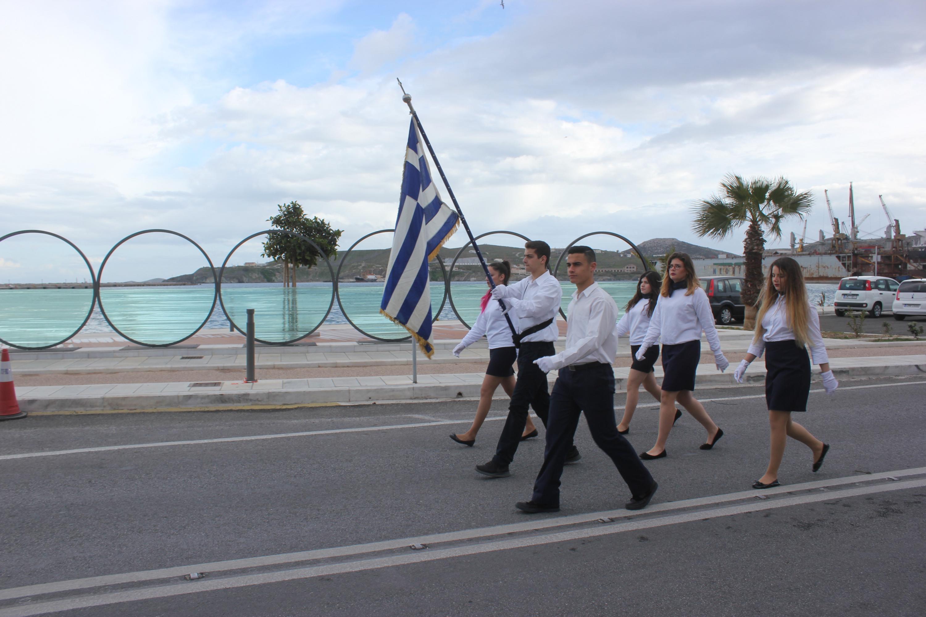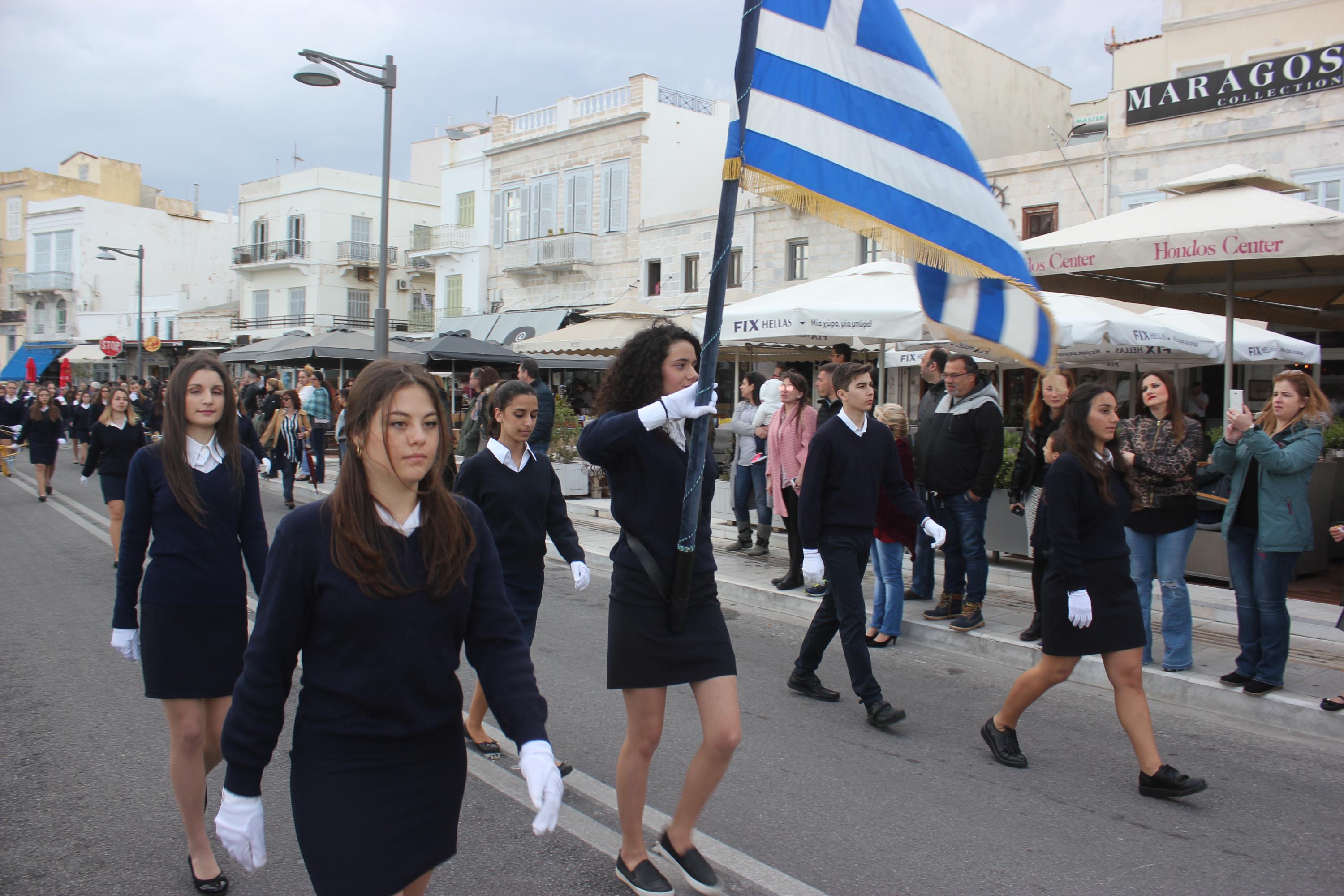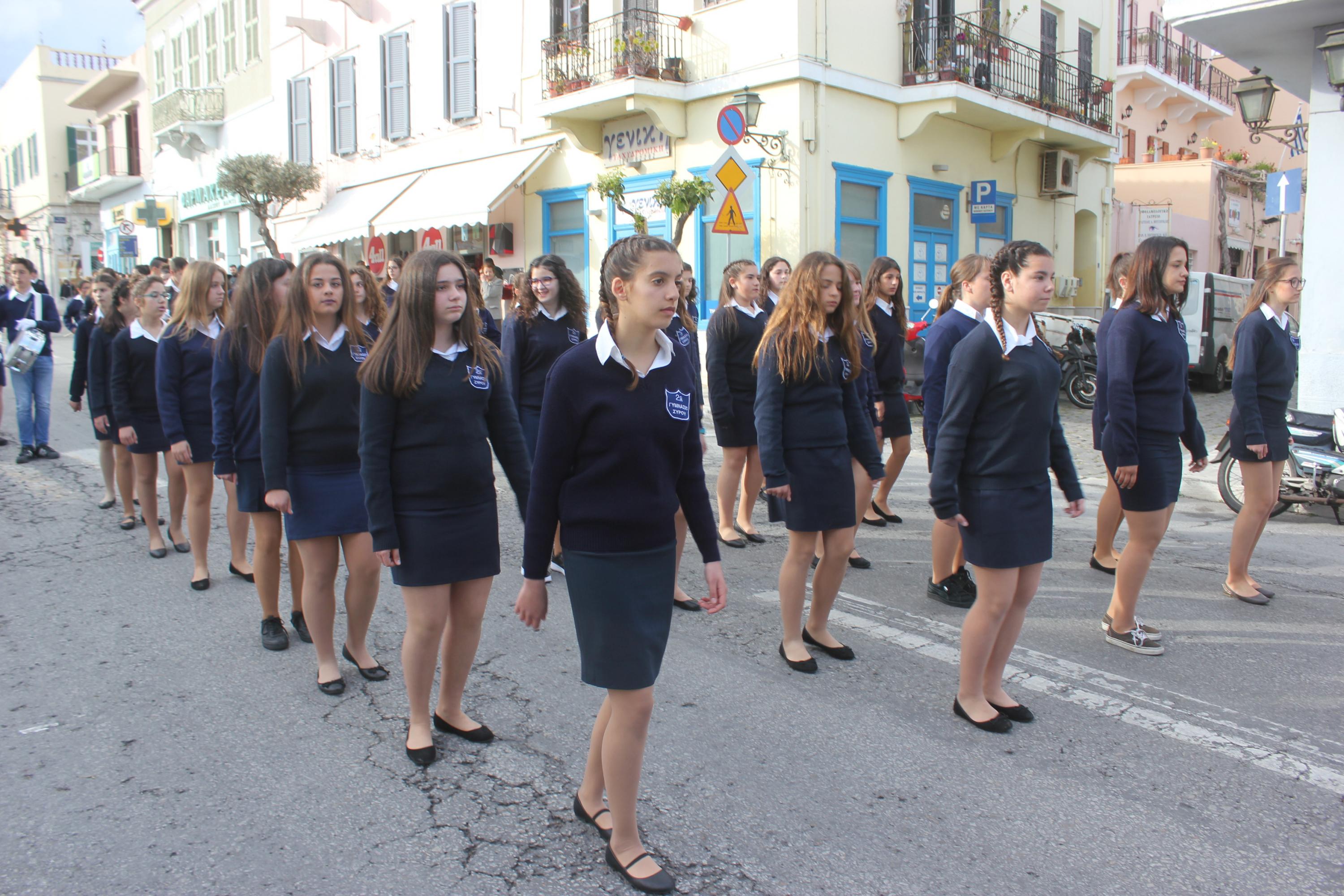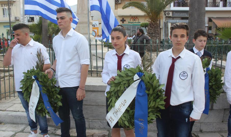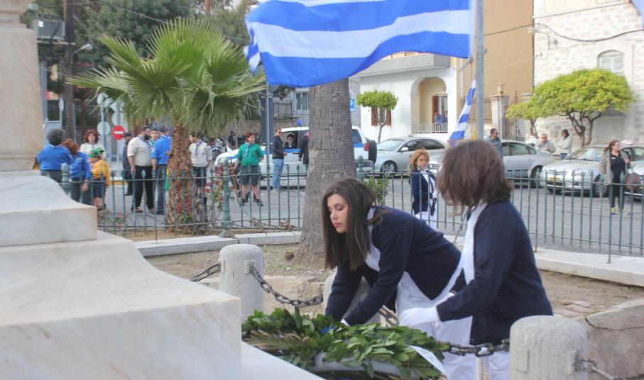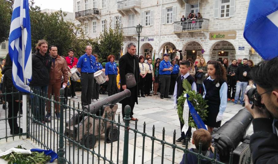 Στη συνέχεια, ακολούθησε κατάθεση στεφάνων στο Μνημείο Πεσόντων Ιερολοχιτών από μαθητές του 1ου Γυμνασίου Σύρου, στο Μνημείο Εθνικής Αντίστασης από μαθητές του 2ου και 3ου Δημοτικού Σχολείου Ερμούπολης και στην προτομή του Πυροπολητή Κανάρη από σπουδαστές της Ακαδημίας Εμπορικού Ναυτικού Σύρου, μαθητές του 2ου Γυμνασίου Σύρου, του Εσπερινού Γυμνασίου (με τάξεις Λυκείου) Σύρου και από το Ναυτικό Όμιλο Σύρου.