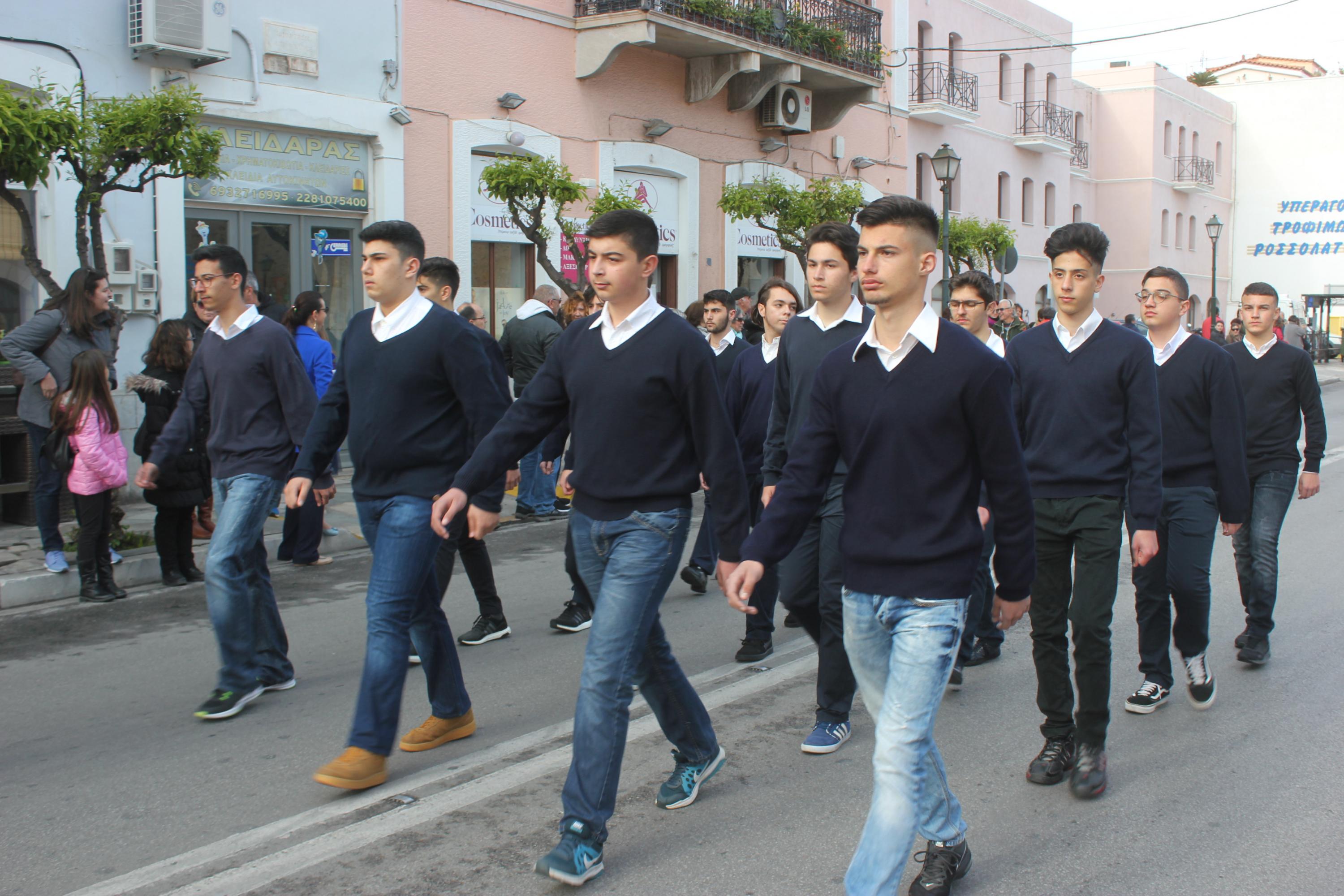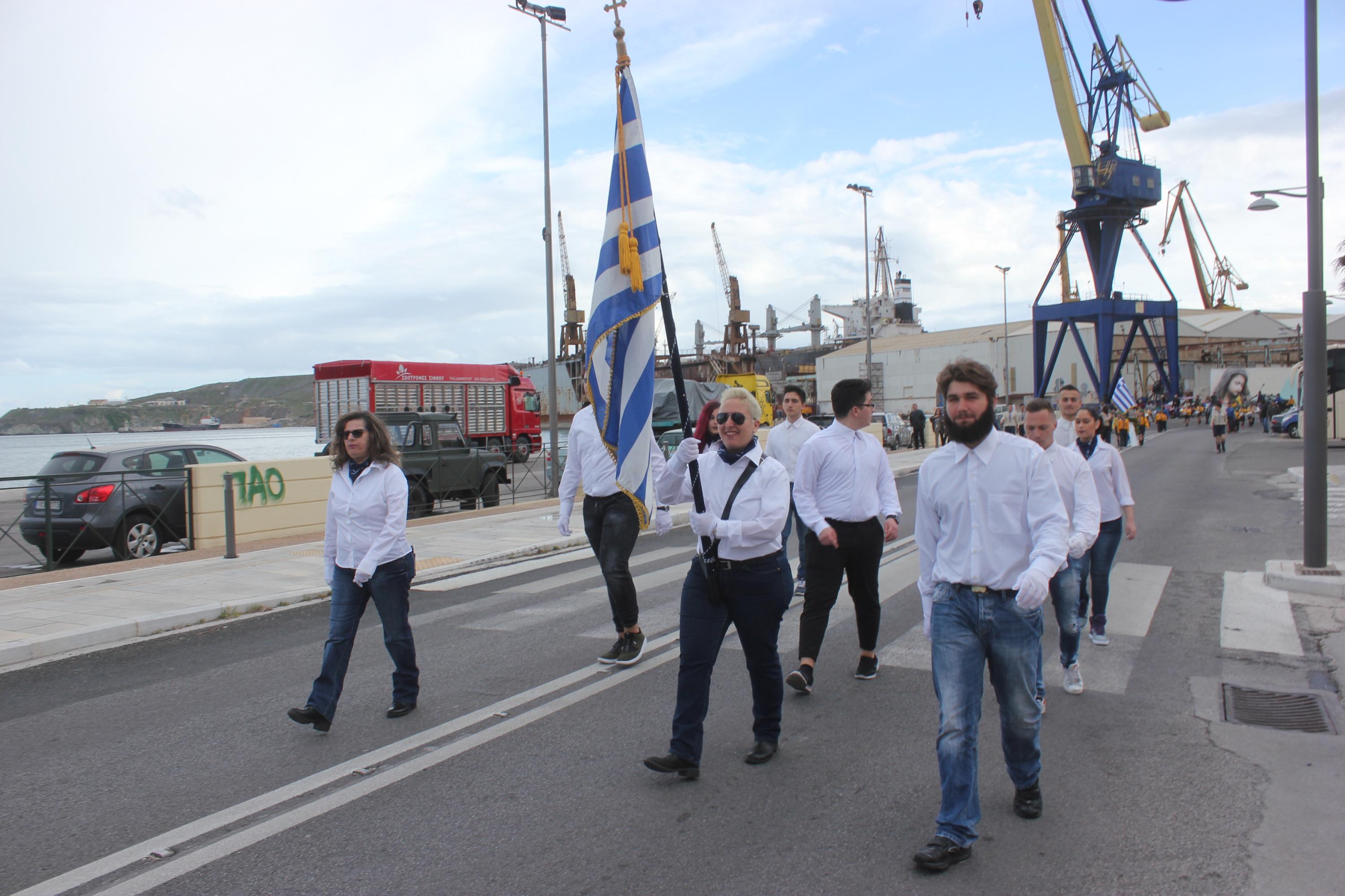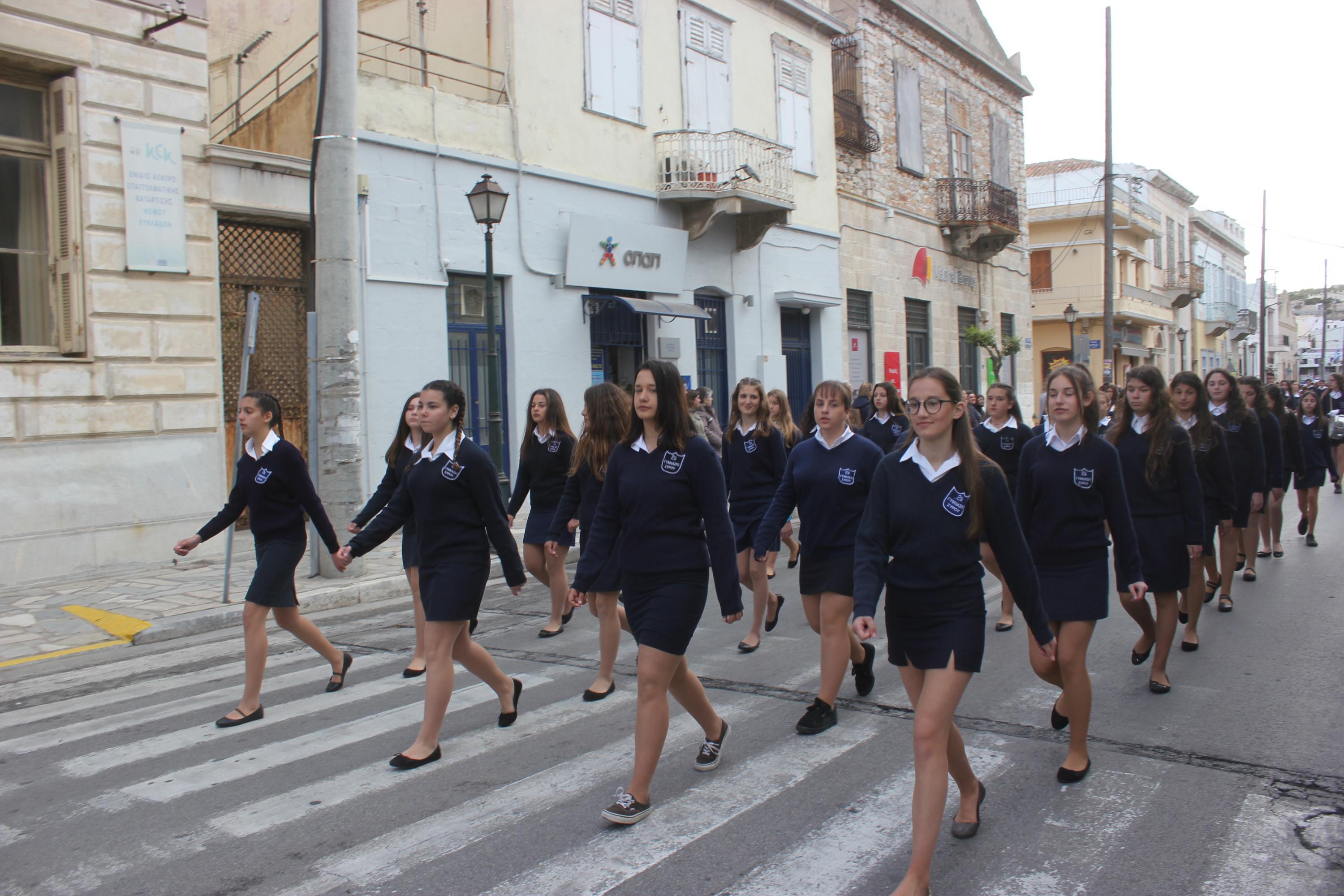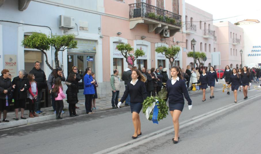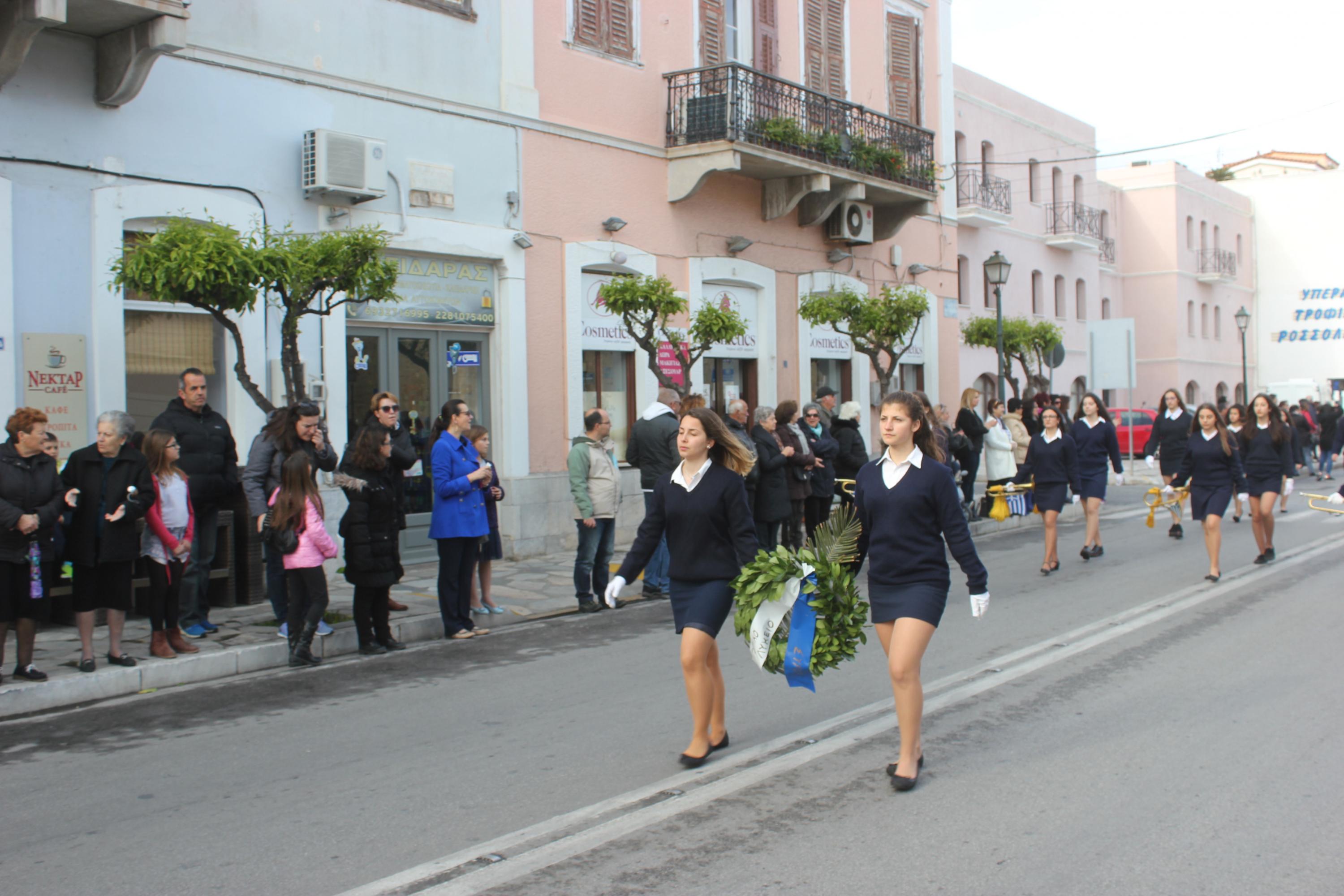 Στη συνέχεια, ακολούθησε κατάθεση στεφάνων στο Μνημείο Πεσόντων Ιερολοχιτών από μαθητές του 1ου Γυμνασίου Σύρου, στο Μνημείο Εθνικής Αντίστασης από μαθητές του 2ου και 3ου Δημοτικού Σχολείου Ερμούπολης και στην προτομή του Πυροπολητή Κανάρη από σπουδαστές της Ακαδημίας Εμπορικού Ναυτικού Σύρου, μαθητές του 2ου Γυμνασίου Σύρου, του Εσπερινού Γυμνασίου (με τάξεις Λυκείου) Σύρου και από το Ναυτικό Όμιλο Σύρου.
