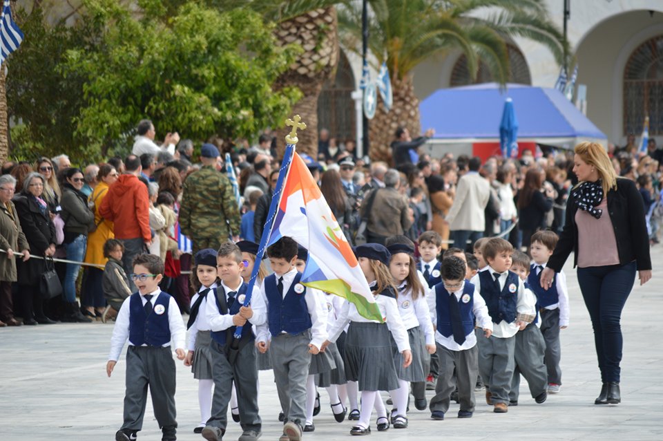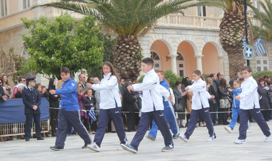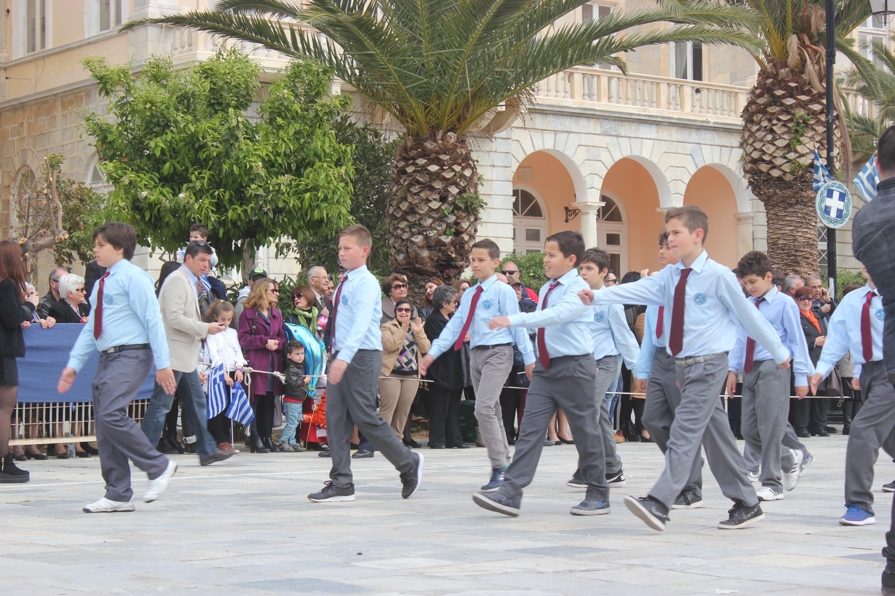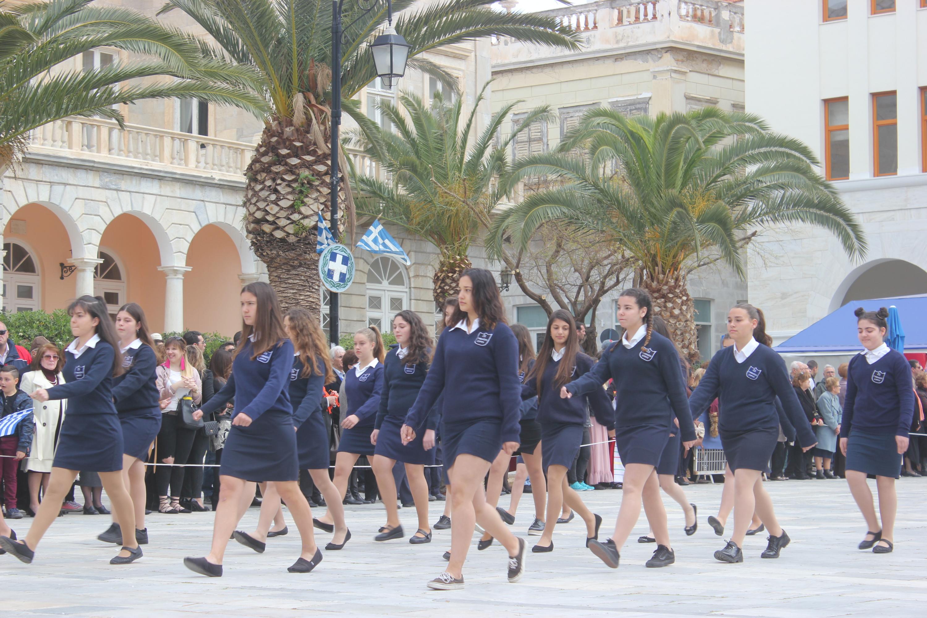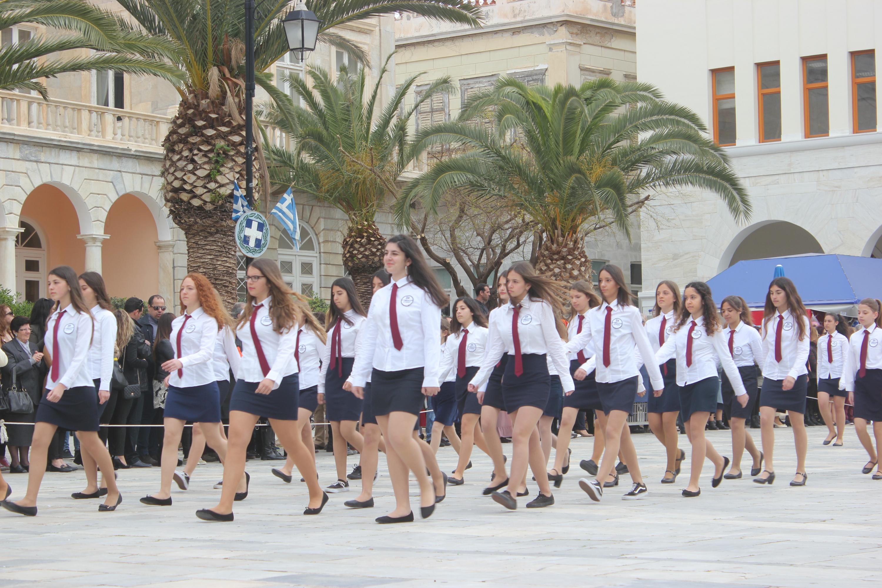 Μετά το πέρας της Επίσημης Δοξολογίας στον Ιερό Ναό Αγίου Νικολάου Ερμουπόλεως, παρουσία του εκπροσώπου της κυβέρνησης Λευτέρη Κρέτσου, γενικού γραμματέα Ενημέρωσης και Επικοινωνίας, του Βουλευτή Κυκλάδων Αντώνη Συρίγου, εκπροσώπων της τοπικής αυτοδιοίκησης, των στρατιωτικών και των σωμάτων ασφαλείας, συλλόγων και φορέων της Σύρου, πραγματοποιήθηκε η καθιερωμένη μαθητική παρέλαση.