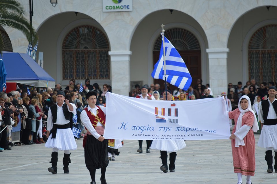 Μετά τη λήξη της παρέλασης, υπό τους ήχους της Φιλαρμονικής του Δήμου Σύρου – Ερμούπολης, που διηύθυνε η αρχιμουσικός Alice Labarche, ακολούθησαν παραδοσιακοί χοροί από το Λύκειο Ελληνίδων Σύρου.