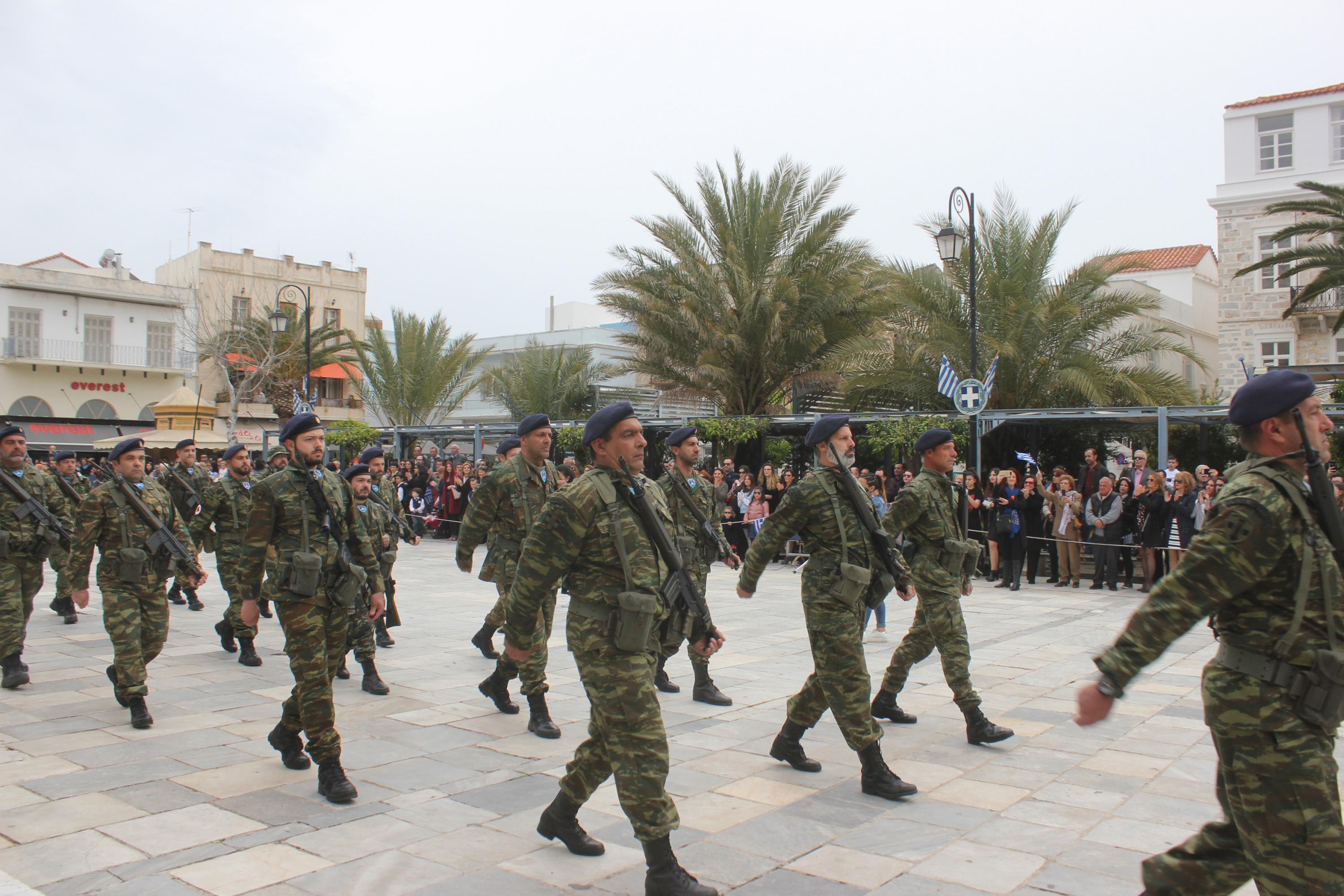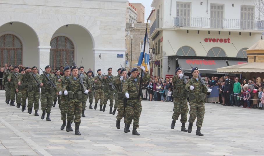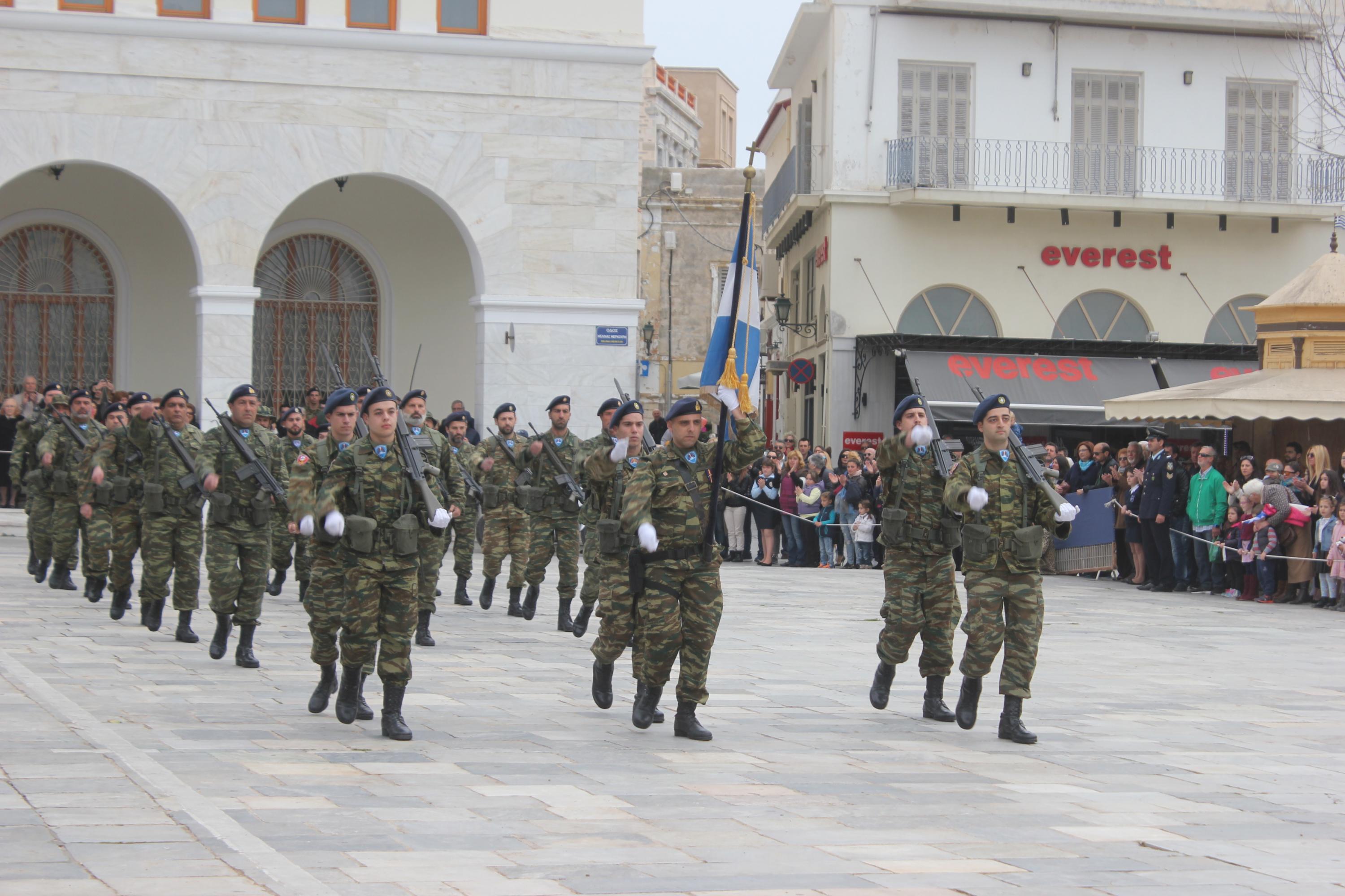Η παρέλαση ολοκληρώθηκε με τη συμμετοχή της μονάδας του Τάγματος Εθνοφυλακής Ερμούπολης, το οποίο εδρεύει στο στρατόπεδο Λοχαγού Ζαφείρη Αποστόλου και αποτελεί οργανικό κομμάτι των ενόπλων δυνάμεων με περιοχές ευθύνης σε όλο το νομό Κυκλάδων.
