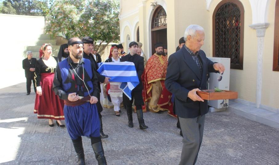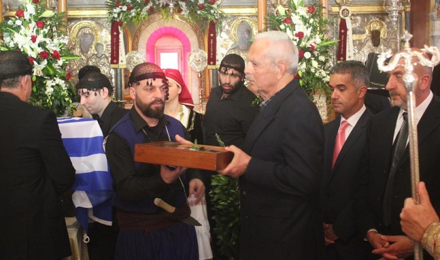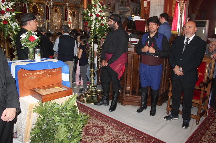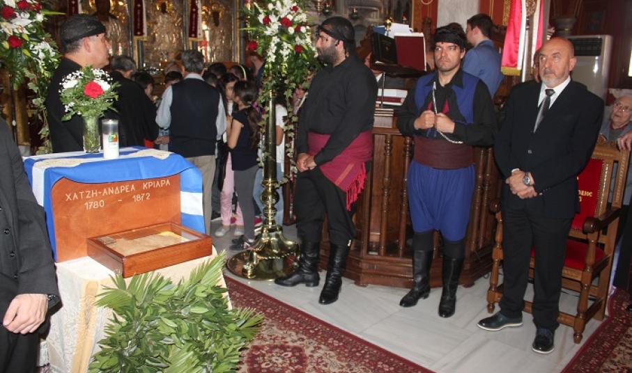 Η πνευματική εκδήλωση της Ιεράς Μητρόπολης Σύρου, του Δήμου Σύρου – Ερμούπολης και του Συλλόγου Κρητών Σύρου προς τιμή του Προέδρου της Καγκελαρίας, που κήρυξε την Επανάσταση στην Κρήτη το 1821, Χατζή-Ανδρέα Κριαρά, πραγματοποιήθηκε προ του πέρατος της Αρχιερατικής Θείας Λειτουργίας στον εορτάζοντα Ιερό Κοιμητηριακό Ναό του Αγίου Γεωργίου Ερμουπόλεως.