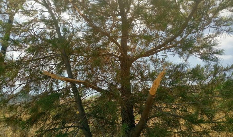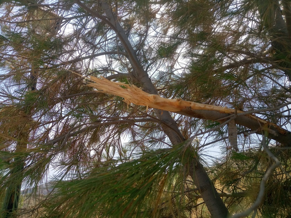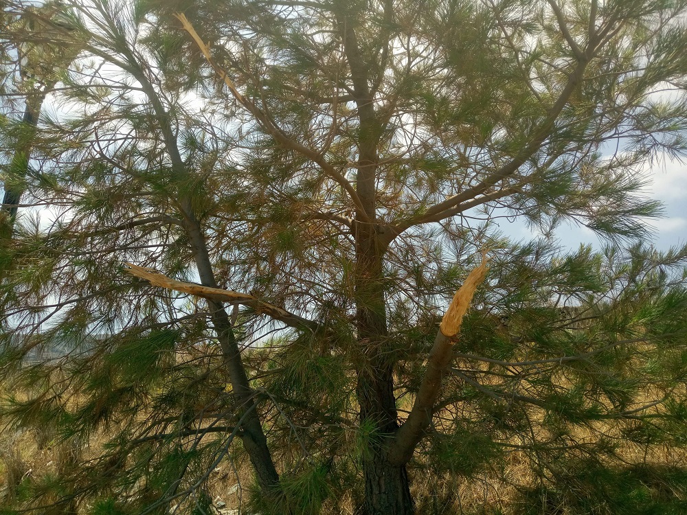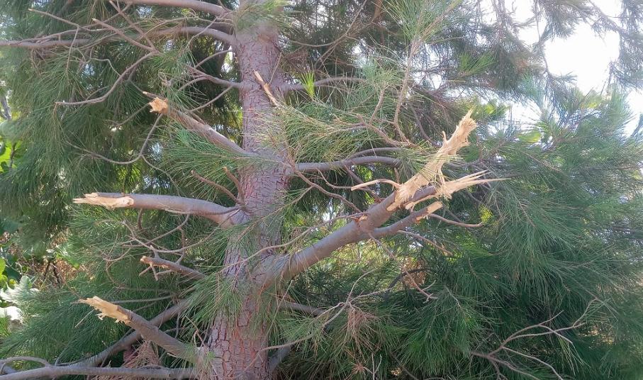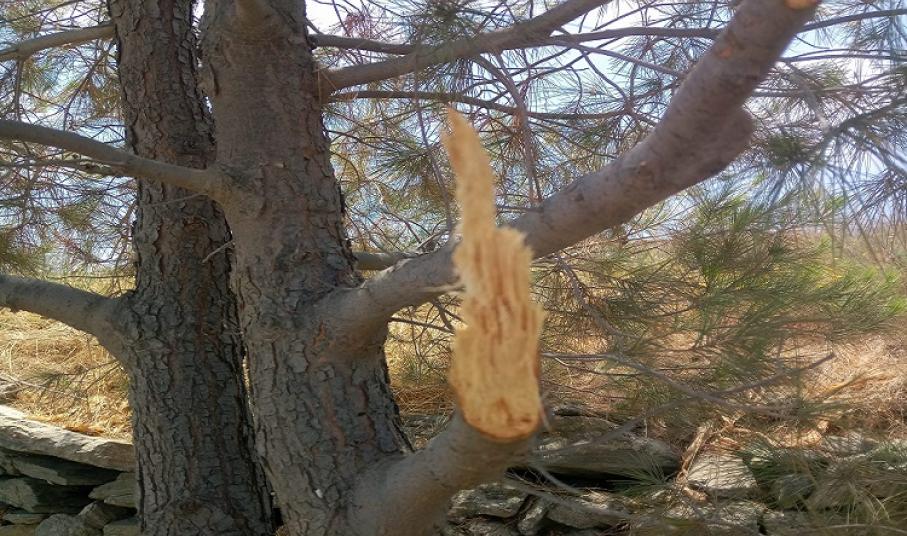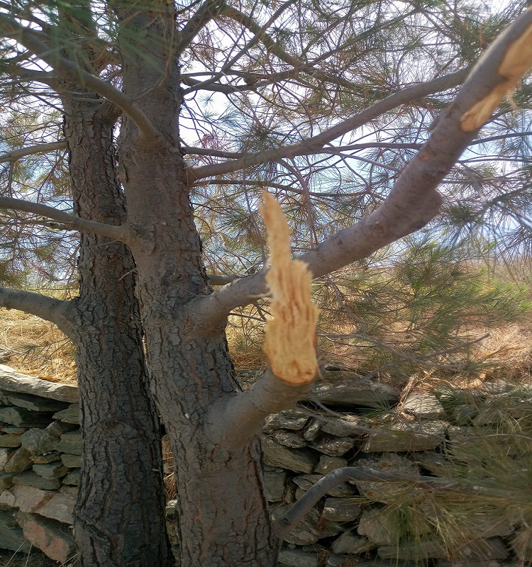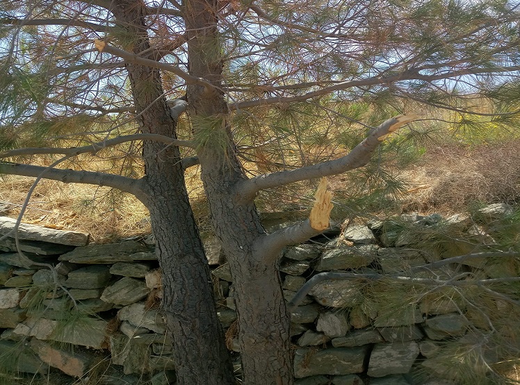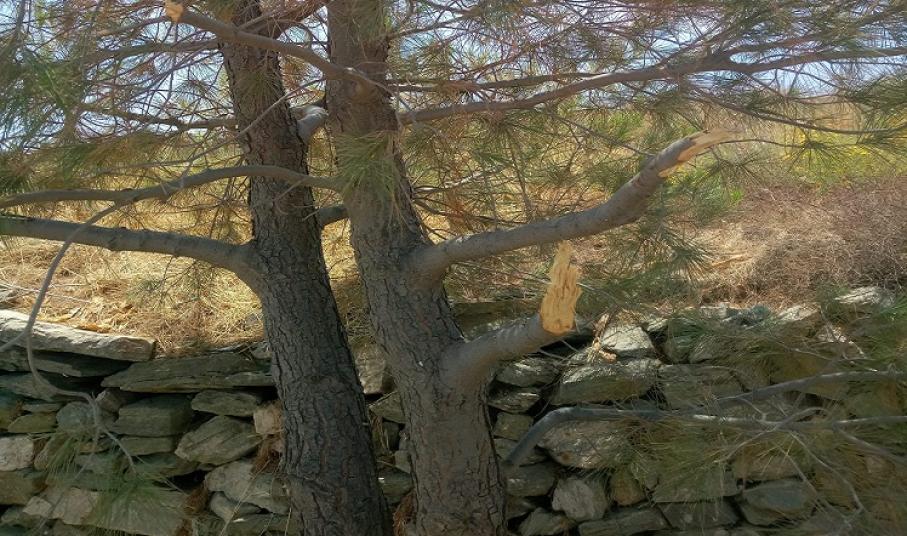 Χαρακτηριστική η ενέργεια βανδαλισμού πεύκων που παρατηρήθηκε στην περιοχή των Χρούσσων και συγκεκριμένα στο δρόμο της Φανερωμένης έως τη στάση Σκουλά, με σπάσιμο τμημάτων πεύκων και βίαιης αποκοπής μεγάλων κλαδιών τους.
