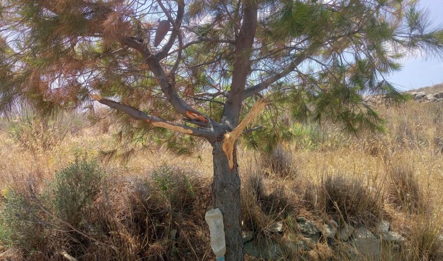 Σε ένα νησί το οποίο στερείται βλάστησης, τα λιγοστά δέντρα που κοσμούν κάποιες περιοχές, ενώ χρήζουν ιδιαίτερης προστασίας και φροντίδας, υπάρχουν περιπτώσεις που πέφτουν θύματα ασυνείδητων πρακτικών.