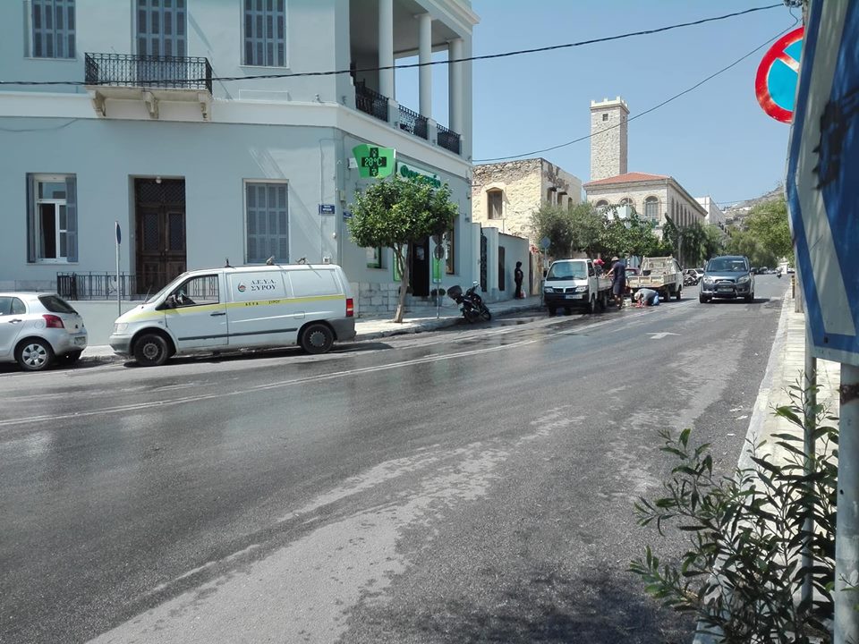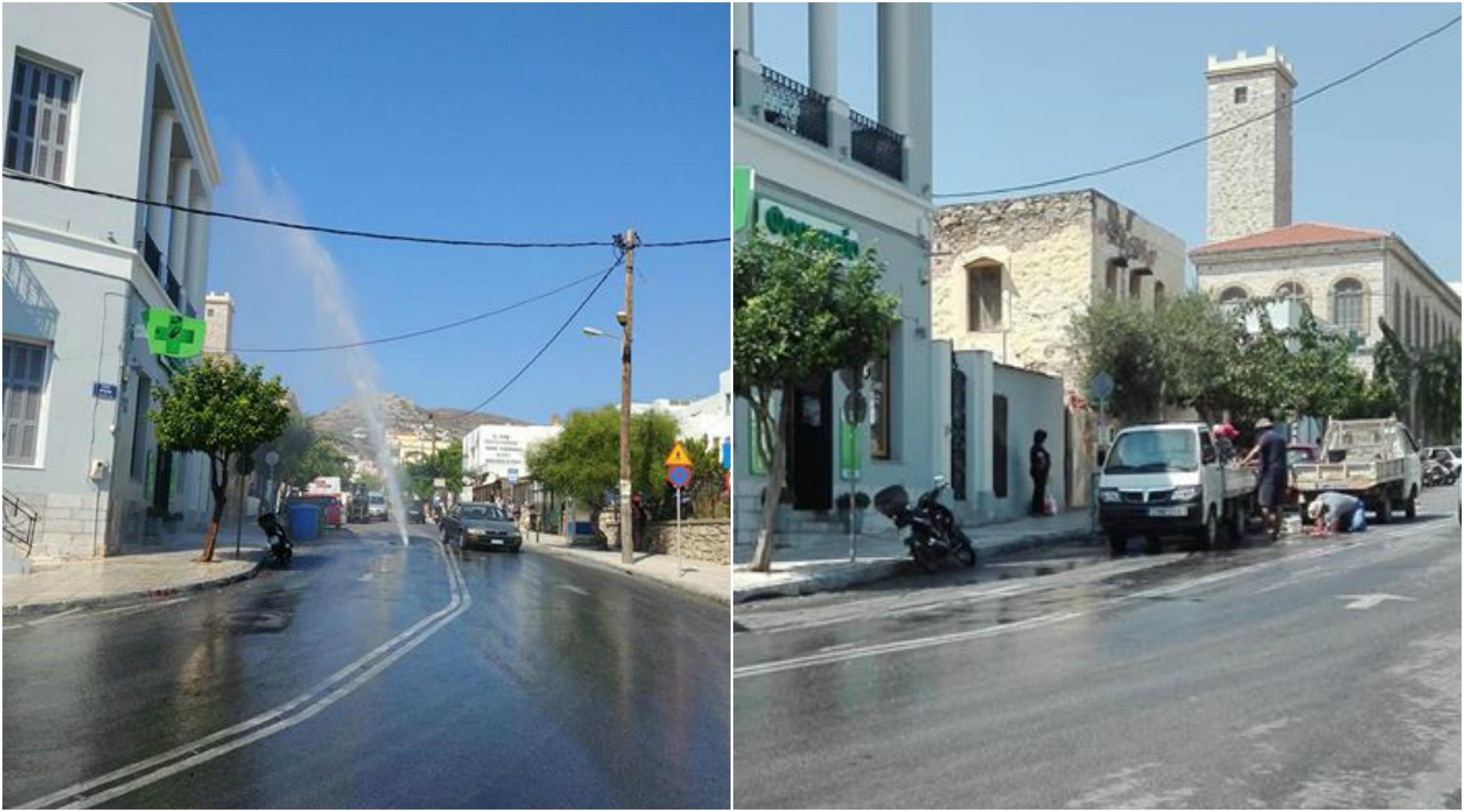 Άμεσες ήταν οι εργασίες αποκατάστασης του προβλήματος που προκλήθηκε σήμερα το πρωί στην οδό Γεωργίου Παπανδρέου στην Ερμούπολη (πλησίον της Πλατείας Ηρώων), η οποία μετετράπηκε σε «σιντριβάνι», όταν έκανε την εμφάνισή του ένας μεγάλος πίδακας που εκτόξευε νερό στον αέρα.