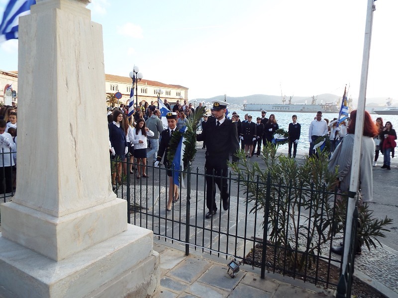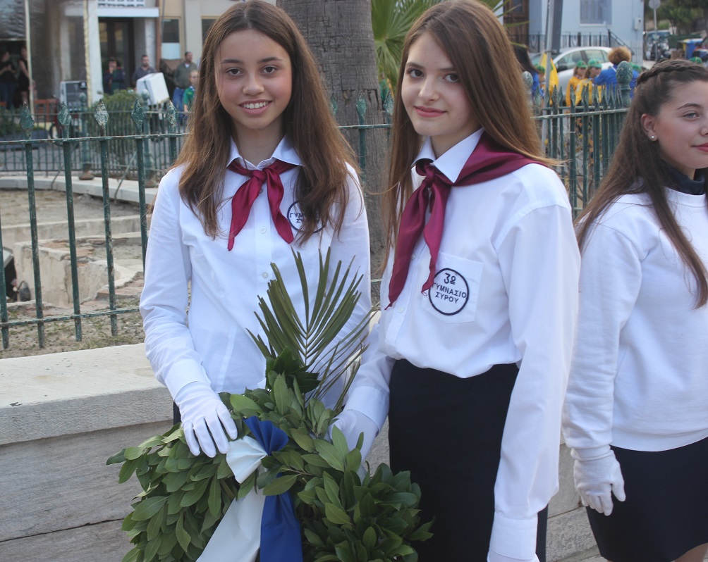Κατά τη διάρκεια της παρέλασης, οι μαθητές του ΕΠΑΛ Σύρου, του 3ου Γυμνασίου Σύρου, του 5ου Δημοτικού Σχολείου Ερμούπολης, του Εσπερινού ΕΠΑΛ Σύρου και σπουδάστριες του Δημόσιου Ινστιτούτου Επαγγελματικής Κατάρτισης (ΔΙΕΚ) του Γενικού Νοσοκομείου Σύρο κατέθεσαν στεφάνι στο Ηρώο των Πεσόντων, ενώ μαθητές του 1ου Γυμνασίου Σύρου απέτισαν φόρο τιμής στο Μνημείο Πεσόντων Ιερολοχιτών. Ακολούθως, μαθητές του 2ου και 3ου Δημοτικού Σχολείου Ερμούπολης κατέθεσαν στεφάνι στο Μνημείο Εθνικής Αντίστασγς.