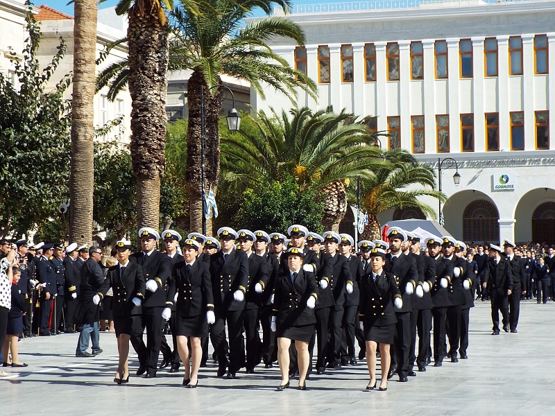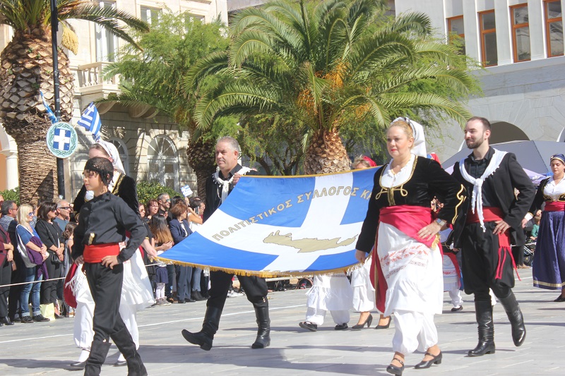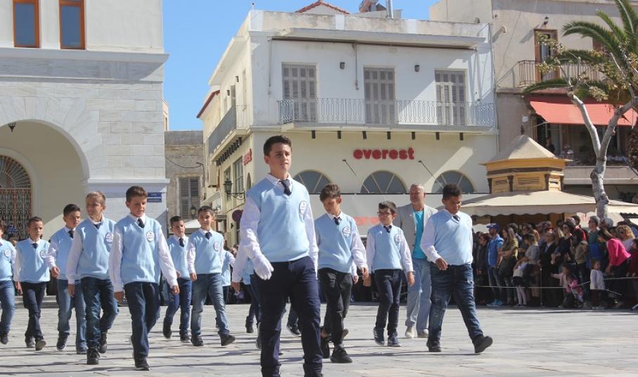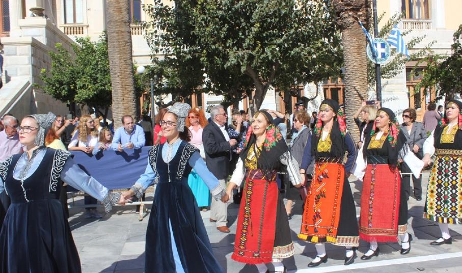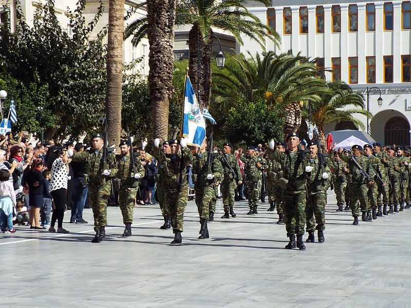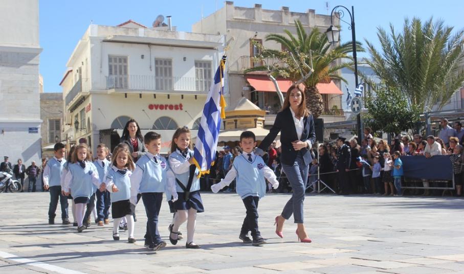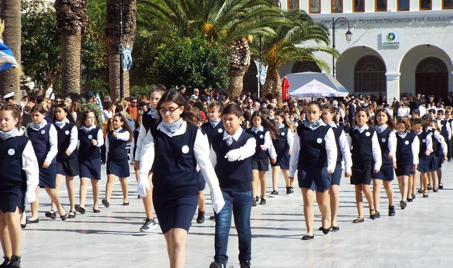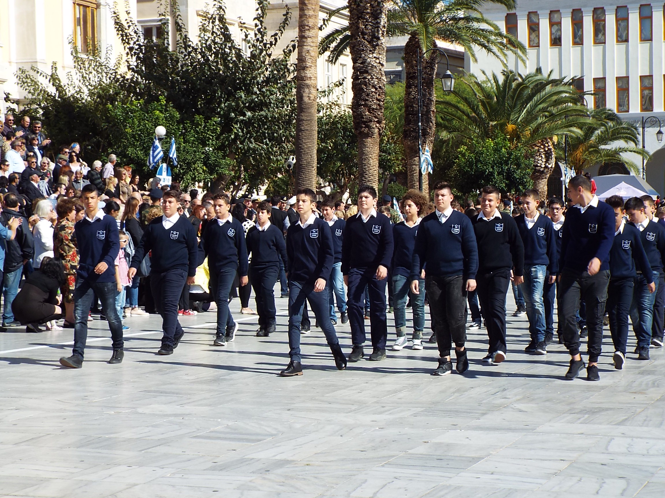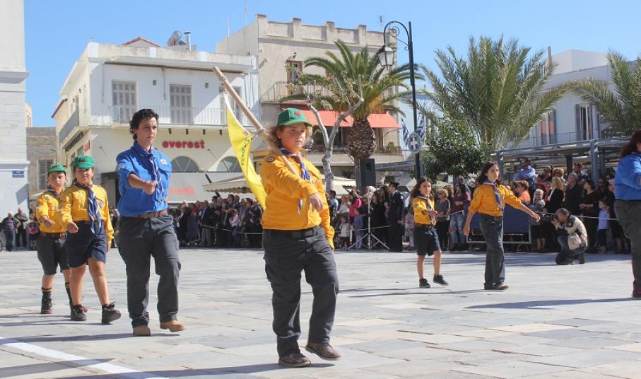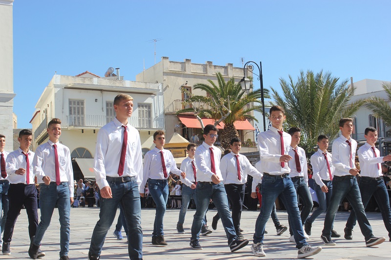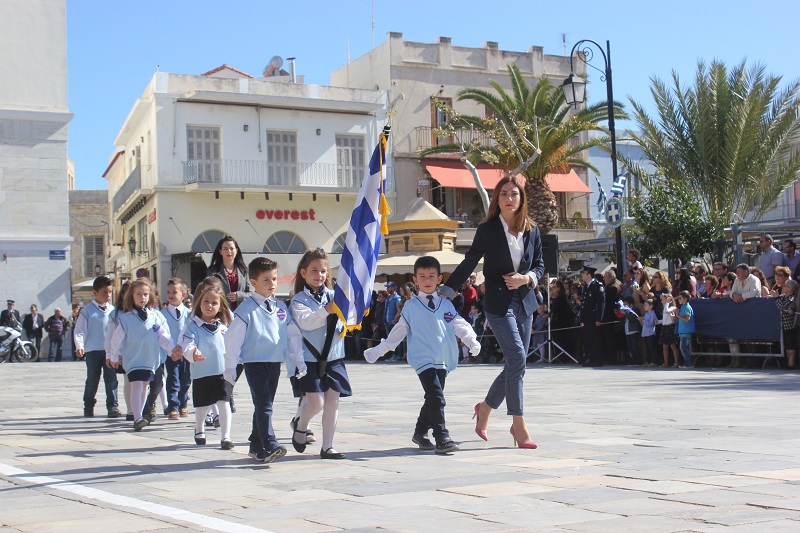 Μετά την στεφάνωση στα ηρώα της Ερμούπολης, που πραγματοποιήθηκε το Σάββατο, 27 Οκτωβρίου, σήμερα, Κυριακή, μαθητές, σπουδαστές, μέλη αθλητικών και πολιτιστικών συλλόγων, καθώς και το Τάγμα Εθνοφυλακής Ερμούπολης παρέλασαν ενώπιον του Βουλευτή Κυκλάδων Αντώνη Συρίγου, εκπροσώπων της τοπικής αυτοδιοίκησης, των στρατιωτικών αρχών και των σωμάτων ασφαλείας, φορέων, καθώς και πλήθους κόσμους.