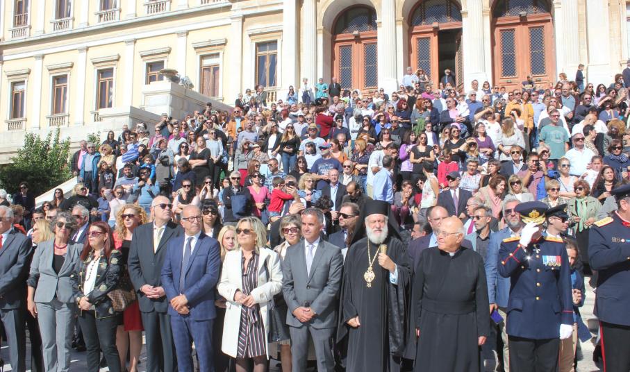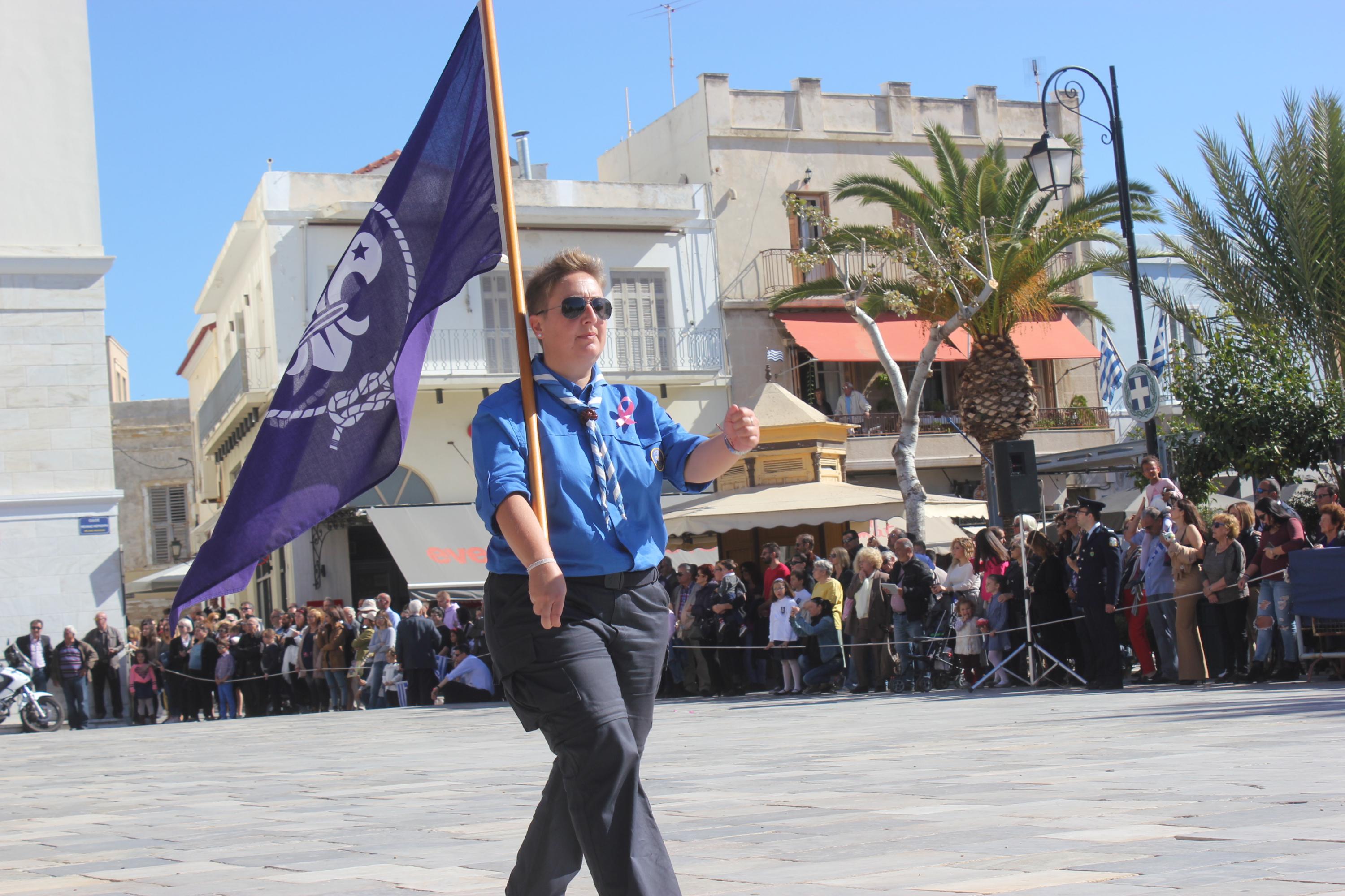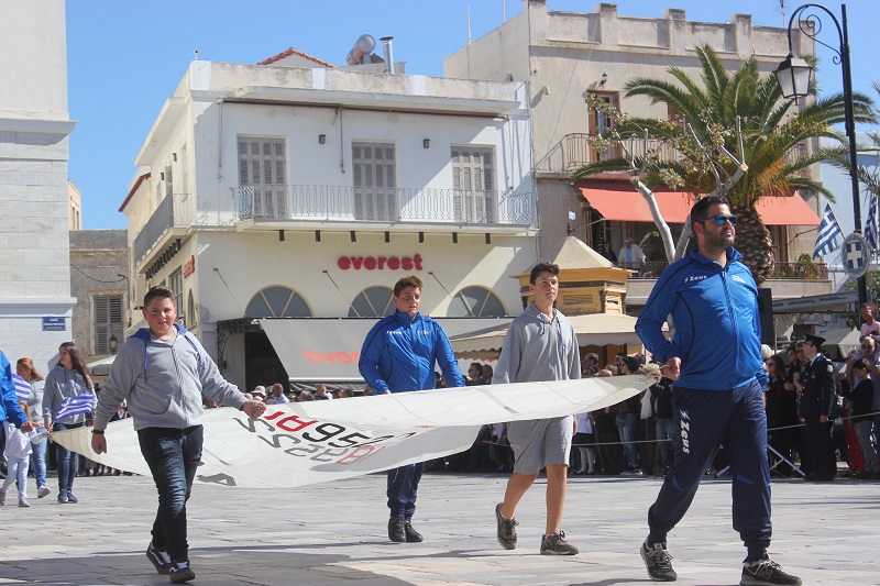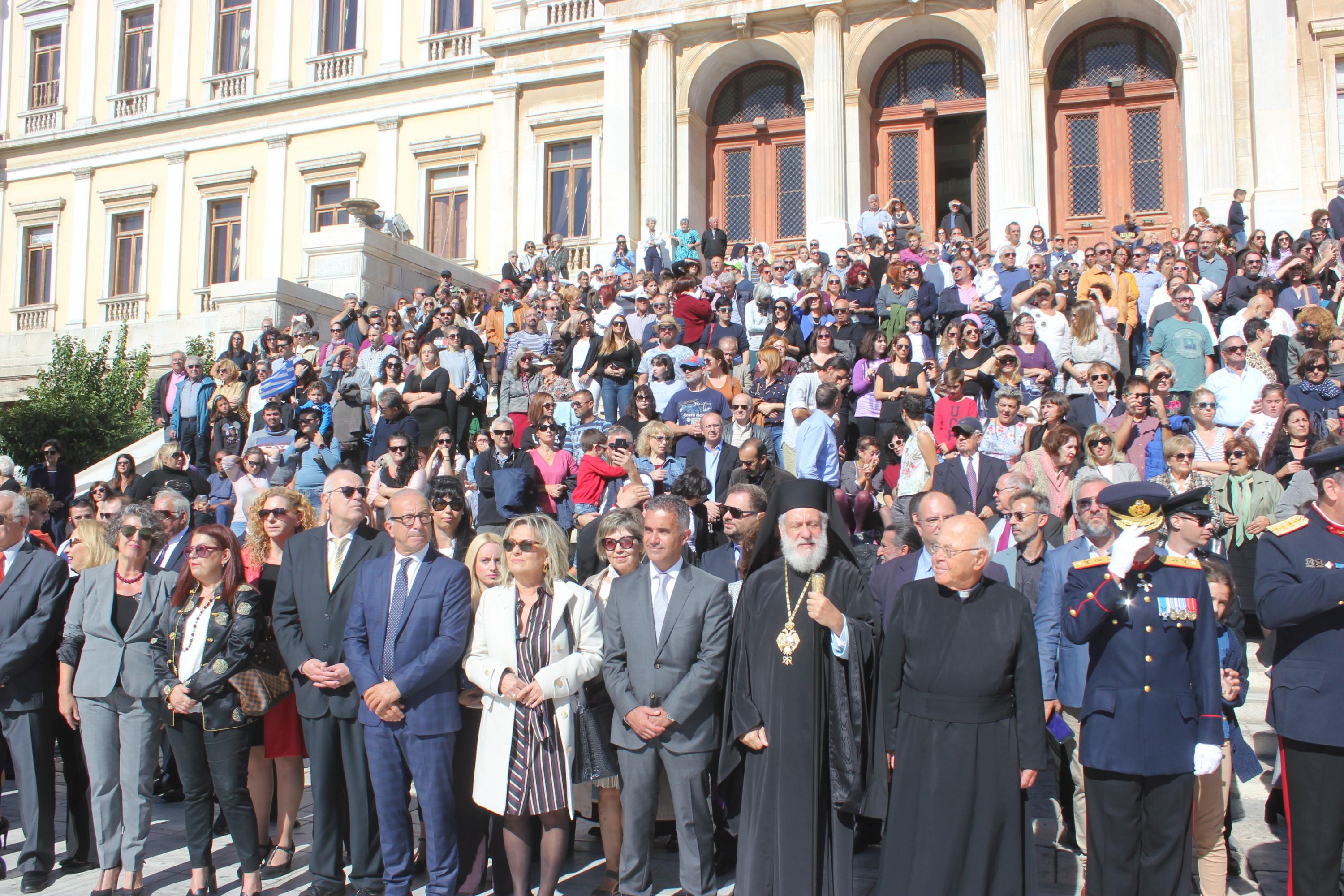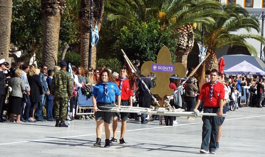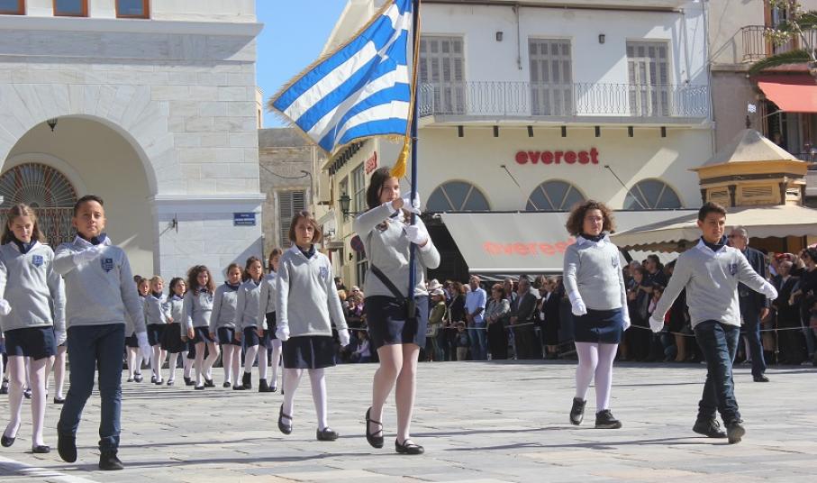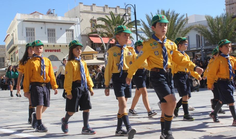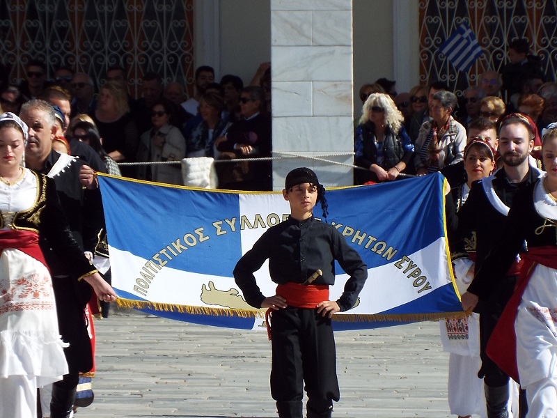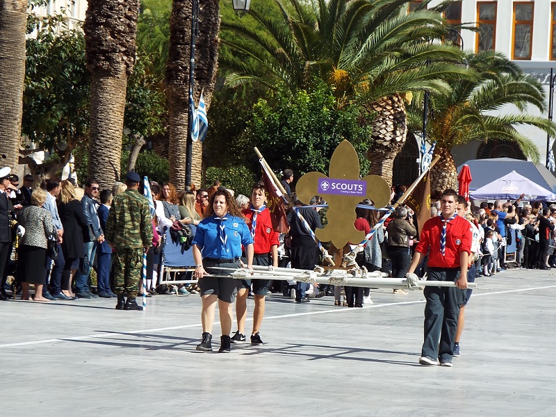 Μετά την στεφάνωση στα ηρώα της Ερμούπολης, που πραγματοποιήθηκε το Σάββατο, 27 Οκτωβρίου, σήμερα, Κυριακή, μαθητές, σπουδαστές, μέλη αθλητικών και πολιτιστικών συλλόγων, καθώς και το Τάγμα Εθνοφυλακής Ερμούπολης παρέλασαν ενώπιον του Βουλευτή Κυκλάδων Αντώνη Συρίγου, εκπροσώπων της τοπικής αυτοδιοίκησης, των στρατιωτικών αρχών και των σωμάτων ασφαλείας, φορέων, καθώς και πλήθους κόσμους.