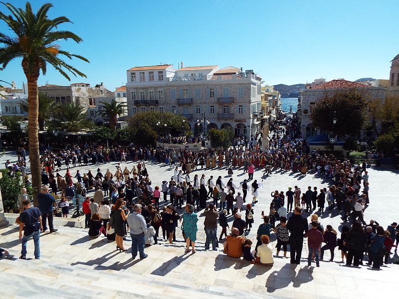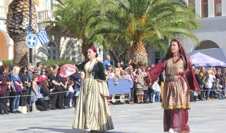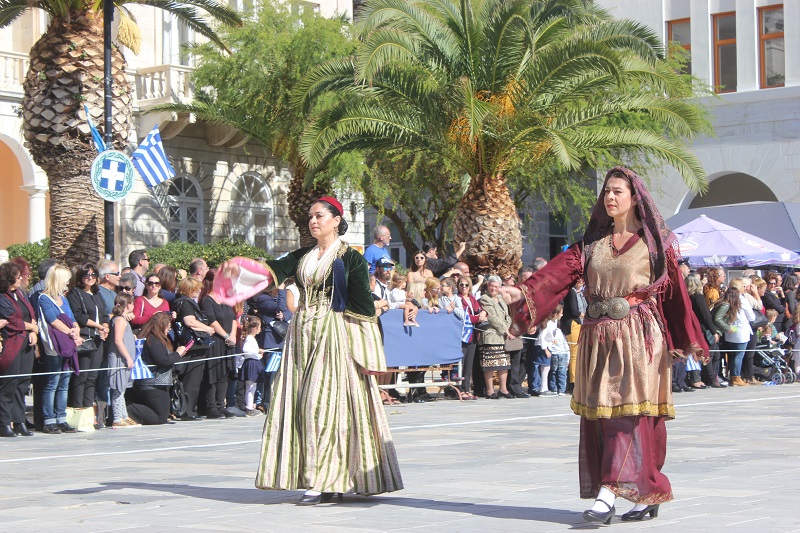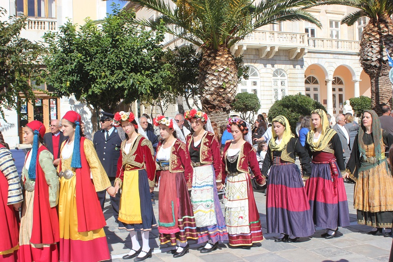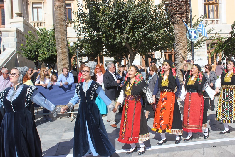 Με την Φιλαρμονική Ορχήστρα του Δήμου Σύρου – Ερμούπολης να ανοίγει την παρέλαση, μέλη του Λυκείου Ελληνίδων Σύρου, μέλη των πολιτιστικών συλλόγων Βορειοελλαδιτών, Ποντίων και Κρητών, μαθητές από όλα τα Δημοτικά σχολεία, Γυμνάσια και Λύκεια του νησιού, μέλη του Ναυτικού Ομίλου Σύρου, του αθλητικού συλλόγου Tae Kwon Do Ερμούπολης, του Σώματος Ελλήνων Προσκόπων, σπουδαστές από τη Σχολή Εμπορικού Ναυτικού Σύρου, καθώς και οι στρατιώτες του Τάγματος Εθνοφυλακής, απέτισαν φόρο τιμής στην ηρωική άρνηση των Ελλήνων, απέναντι στο τελεσίδικο των δυνάμεων του Άξονα, για αποδοχή της κατοχής.