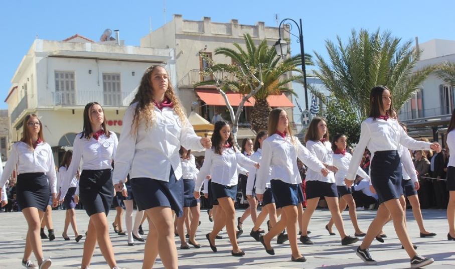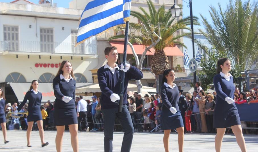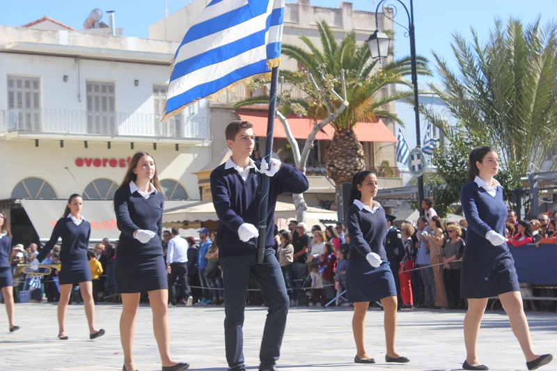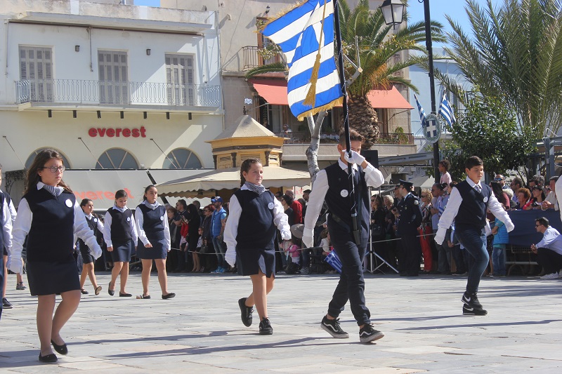 Κορυφώθηκε με την μαθητική – στρατιωτική παρέλαση, στην πλατεία Μιαούλη, ο τριήμερος εορτασμός για την εθνική επέτειο του μεγαλοπρεπούς ελληνικού “ΟΧΙ” της 28ης Οκτωβρίου.