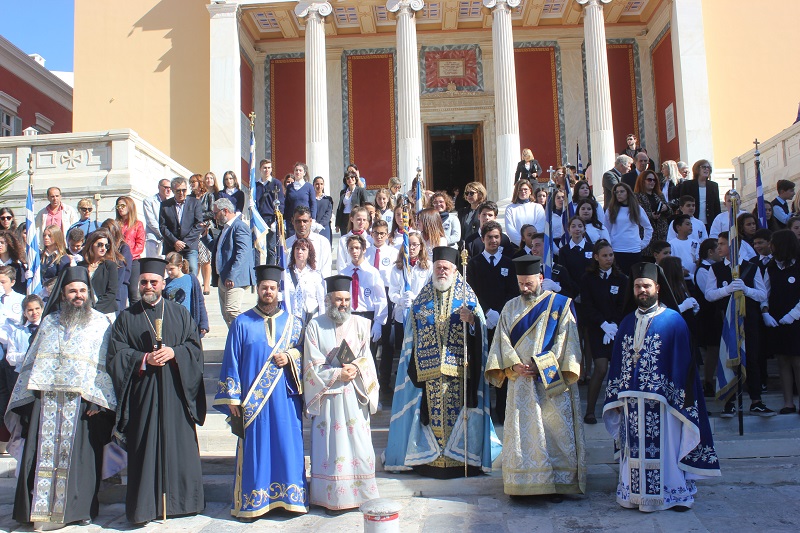 Της μαθητικής παρέλασης, προηγήθηκε επίσημη Δοξολογία στον Ιερό Ναό του Αγίου Νικολάου, χοροστατούντος του Σεβασμιωτάτου Μητροπολίτη Σύρου, εκφώνηση του Πανηγυρικού της Ημέρας μετά το πέρας της Δοξολογίας, από τον Περιφερειακό Έφορο Προσκόπων Κυκλάδων κ. Νεκτάριο Αλυφαντή και τέλος Επιμνημόσυνη Δέηση στο Εθνικό Ηρώο του Ι.Ν. του Αγ.Νικολάου και κατάθεση στεφάνων, από τον κυβερνητικό βουλευτή και εκπροσώπους της τοπικής αυτοδιοίκησης και φορέων.