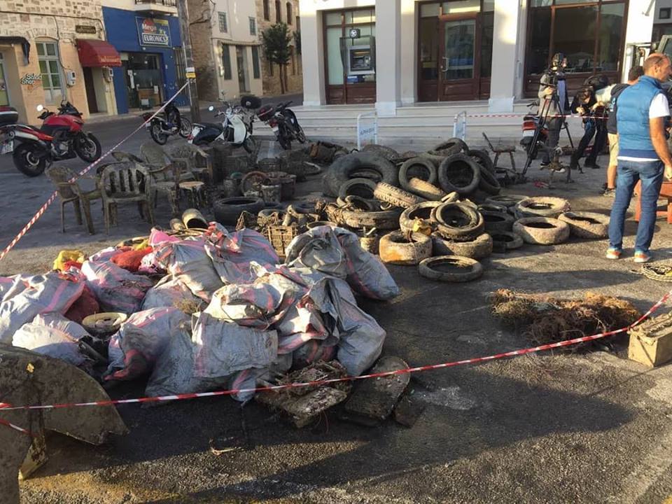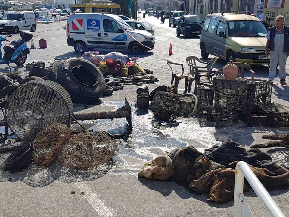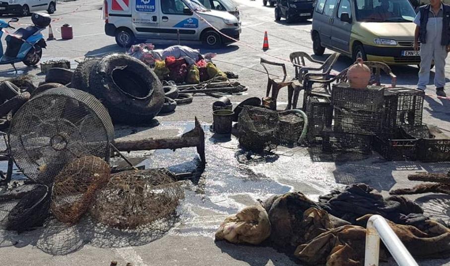 Πρώτος σταθμός των δύο φορέων αποτέλεσε το Καρνάγιο, όπου 18 περίπου δύτες ένωσαν τις δυνάμεις τους για τον καθαρισμό του αλιευτικού λιμανιού.