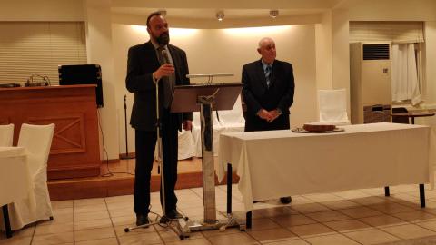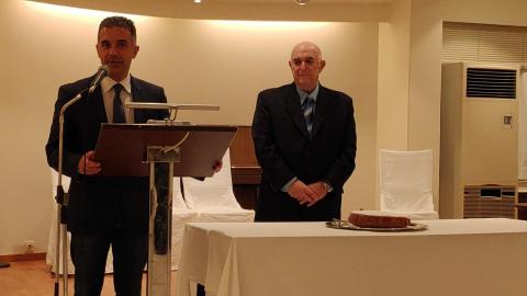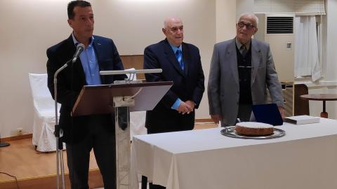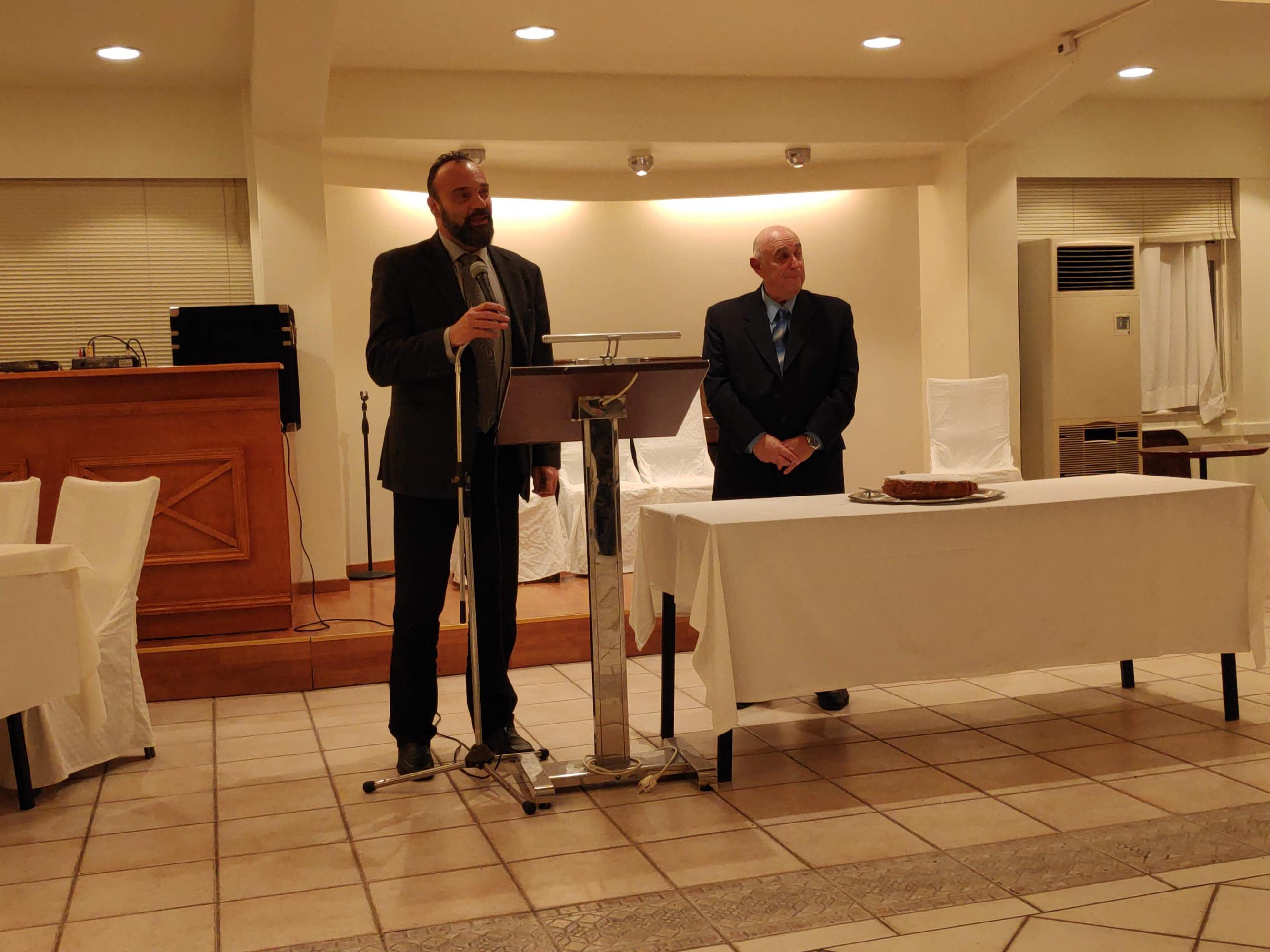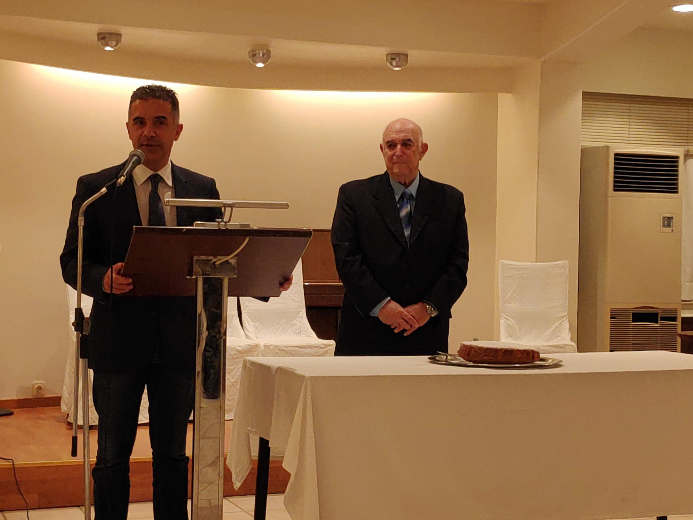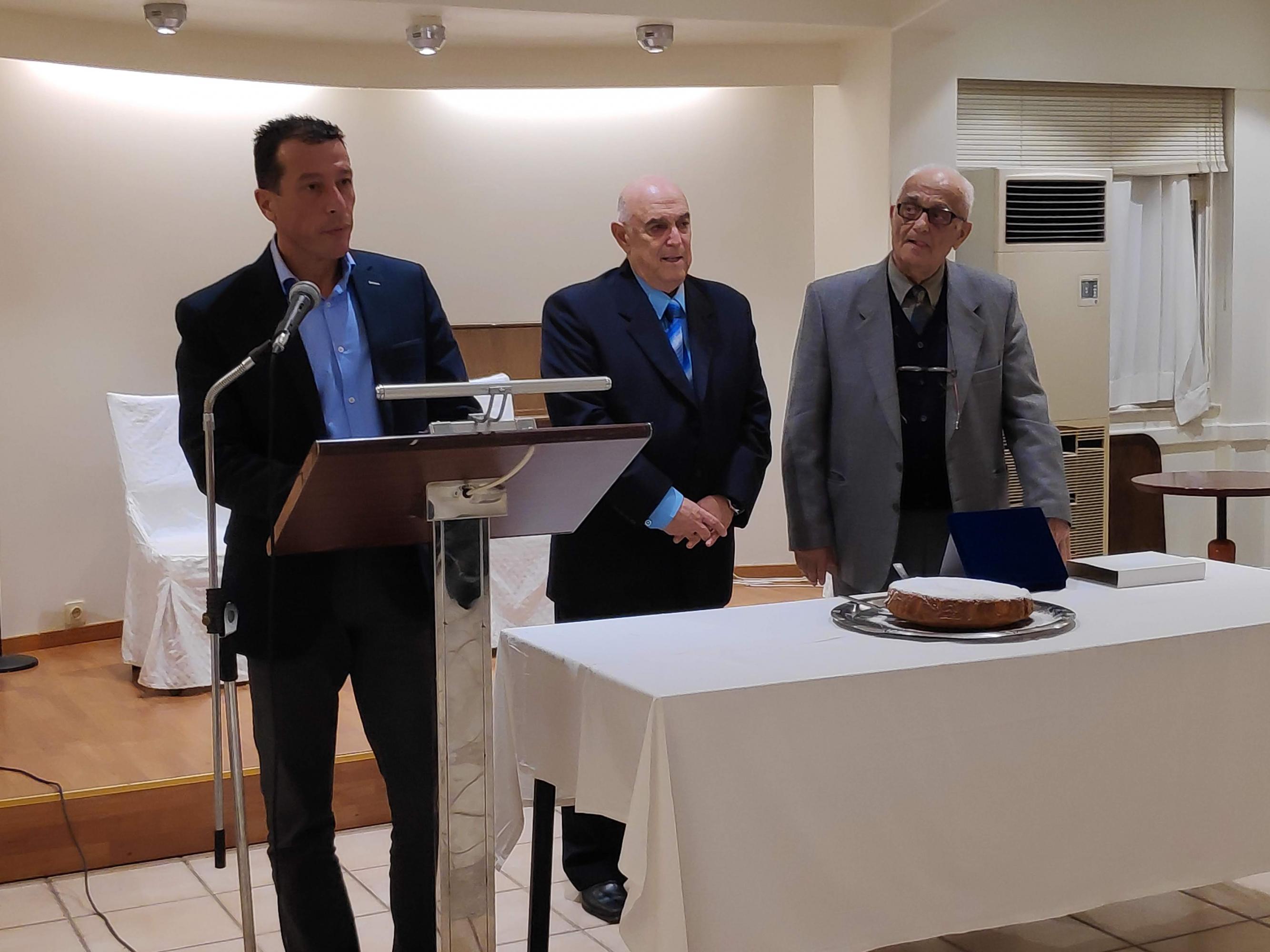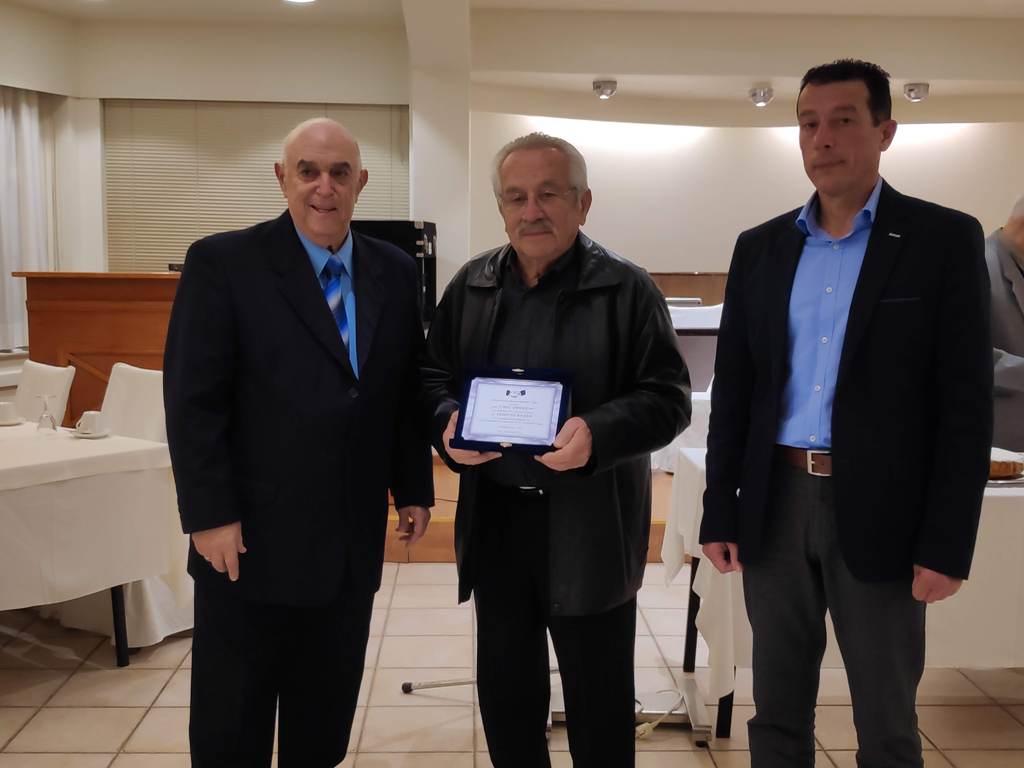 Στον κ. Βλάχο αποδόθηκε από τους κ.κ. Βαμβακούση και Μηλιό τιμητική πλακέτα, ενώ ο ίδιος ευχαρίστησε την Ένωση για την απόδοση τιμής.