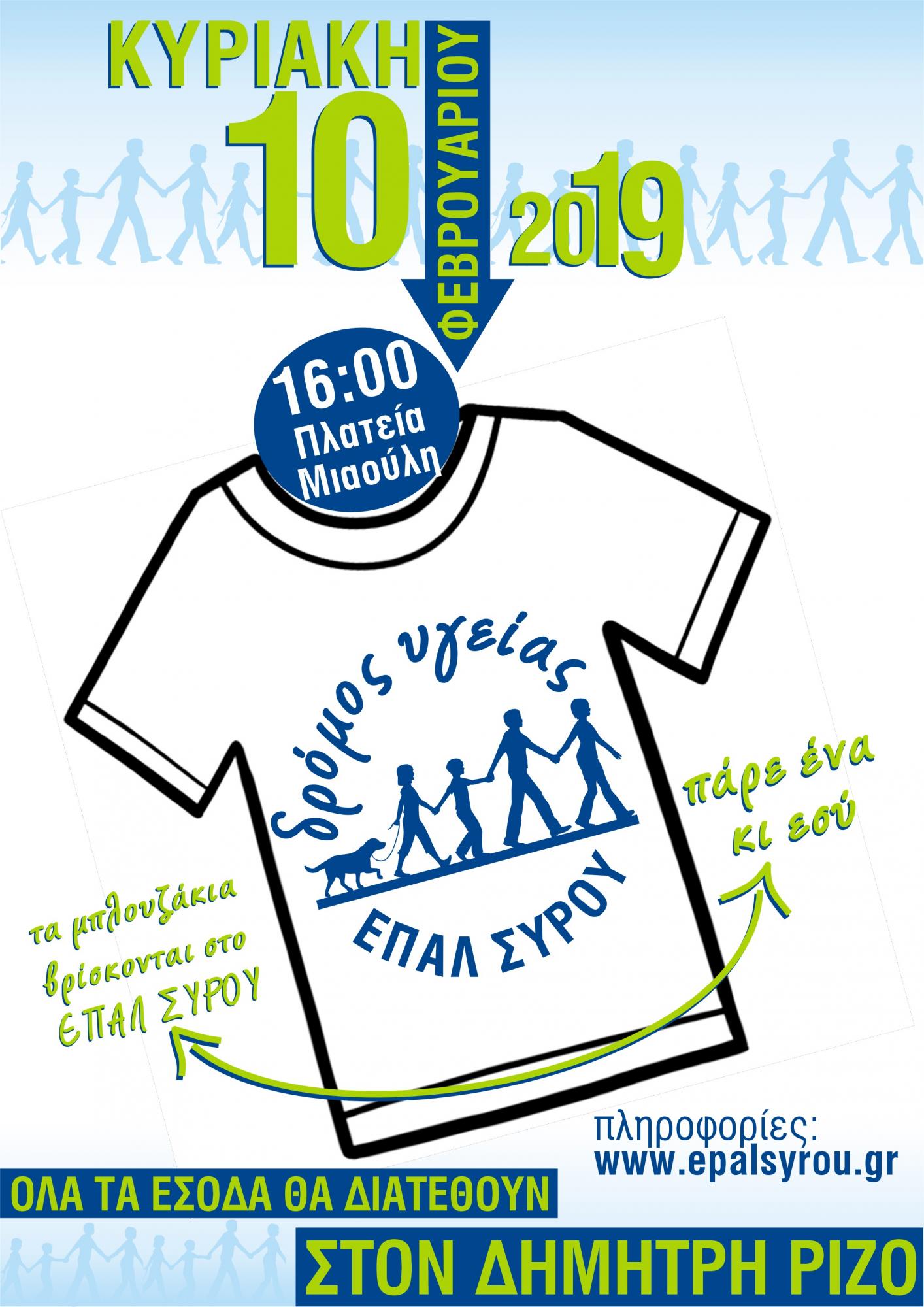 To ΕΠΑΛ Σύρου διοργανώνει την Κυριακή 10/02/2019 και ώρα 16:00 στην Πλατεία Ερμούπολης, αγώνα δρόμου με την ονομασία Δρόμος Υγείας.