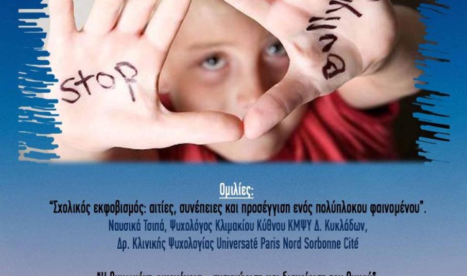 "Σχολικός εκφοβισμός: αιτίες, συνέπειες και προσέγγιση ενός πολύπλοκου φαινομένου",  Ναυσικά Τσιπά, Ψυχολόγος Κλιμακίου Κύθνου ΚΜΨΥ Δ. Κυκλάδων ΕΠΑΨΥ, Δρ Κλινικής Ψυχολογίας Université Paris Nord-Sorbonne Cité