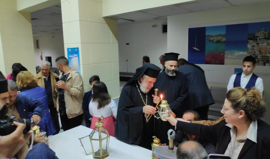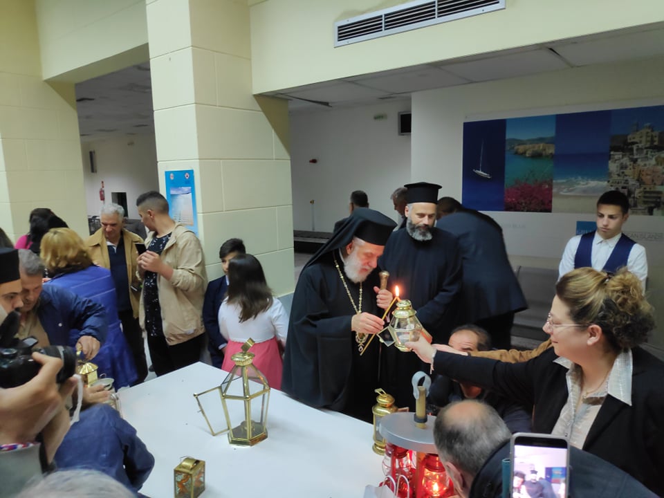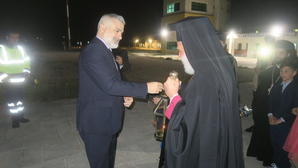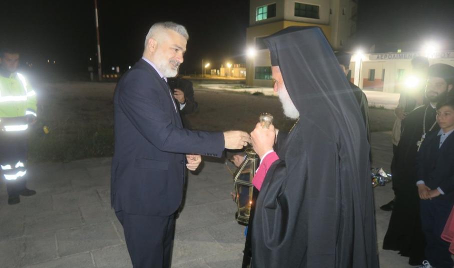 Με πολύ σεβασμό και τη δέουσα τιμή, ο Σεβασμιώτατος Μητροπολίτης Σύρου, πλαισιωμένος από κληρικούς, εκπροσώπους της τοπικής αυτοδιοίκησης, των σωμάτων ασφαλείας, ενοριών του νησιού, υποδέχτηκε το βράδυ του Μεγάλου Σαββάτου στον Αερολιμένα της Σύρου το Άγιο Φως που διανεμήθηκε στους πιστούς κατά την Ακολουθία της Αναστάσεως.