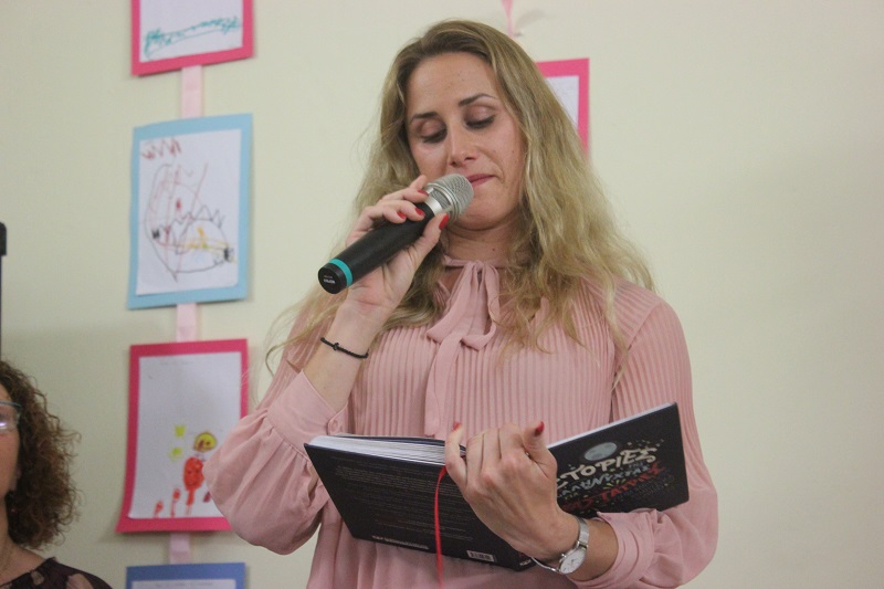 Λίγο πριν το τέλος της εκδήλωσης, η παιδαγωγός Χριστίνα Πρίντεζη διάβασε μία «ιστορία της καληνύχτας» από το βιβλίο με θέμα τη ζωή 100 σπουδαίων γυναικών.
