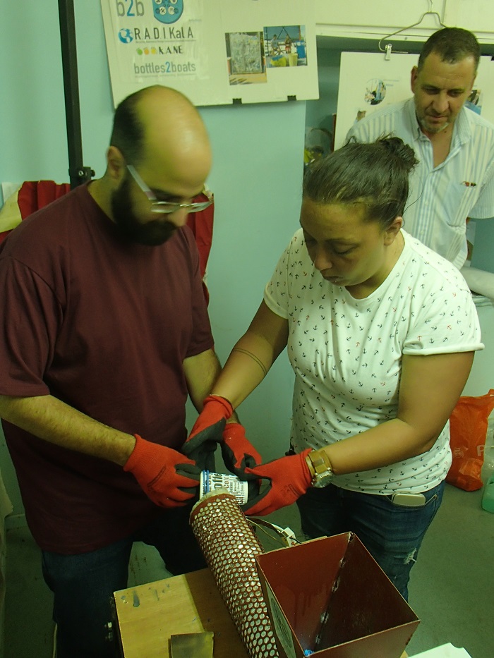 Τον τρόπο χρήσης των τεσσάρων μηχανημάτων, που κατασκευάστηκαν από την Οργάνωση «Precious Plastic Greece» έδειξε στους μαθητές ο καθηγητής περιβαλλοντικής εκπαίδευσης και μέλος της ΚΟΙΝΣΕΠ Απάνω Μεριά Σύρου, στην οποία ανήκει η συγκεκριμένη πρωτοβουλία, Νίκος Βακόνδιος. Την ομάδα υποδέχτηκε, μεταξύ άλλων και η υπεύθυνη της Βαρδακείου, Ευγενία Κόλλια.