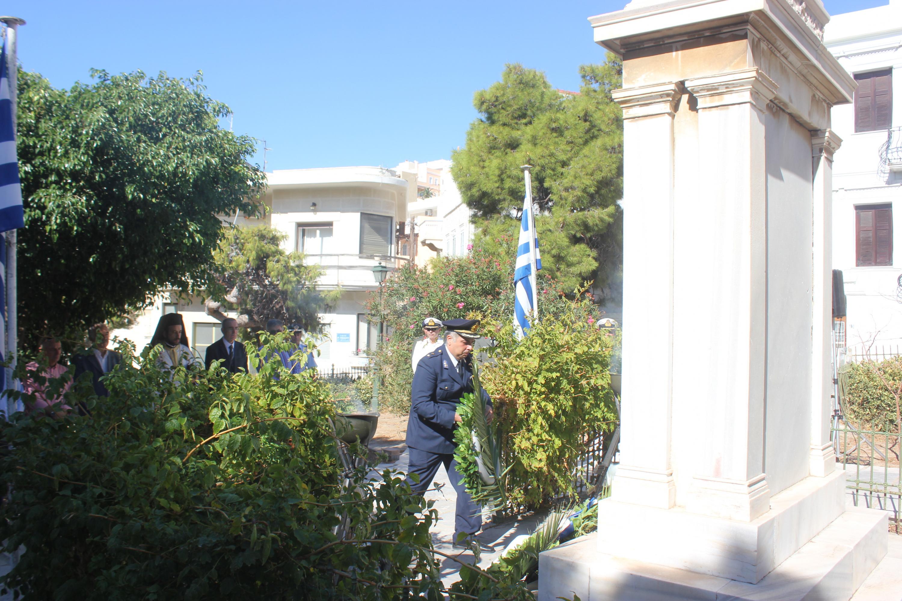 Αμέσως μετά, τελέστηκε επιμνημόσυνη δέηση στο Εθνικό Ηρώο της πόλης και κατάθεση στεφάνων από τους εκπροσώπους των τοπικών φορέων.