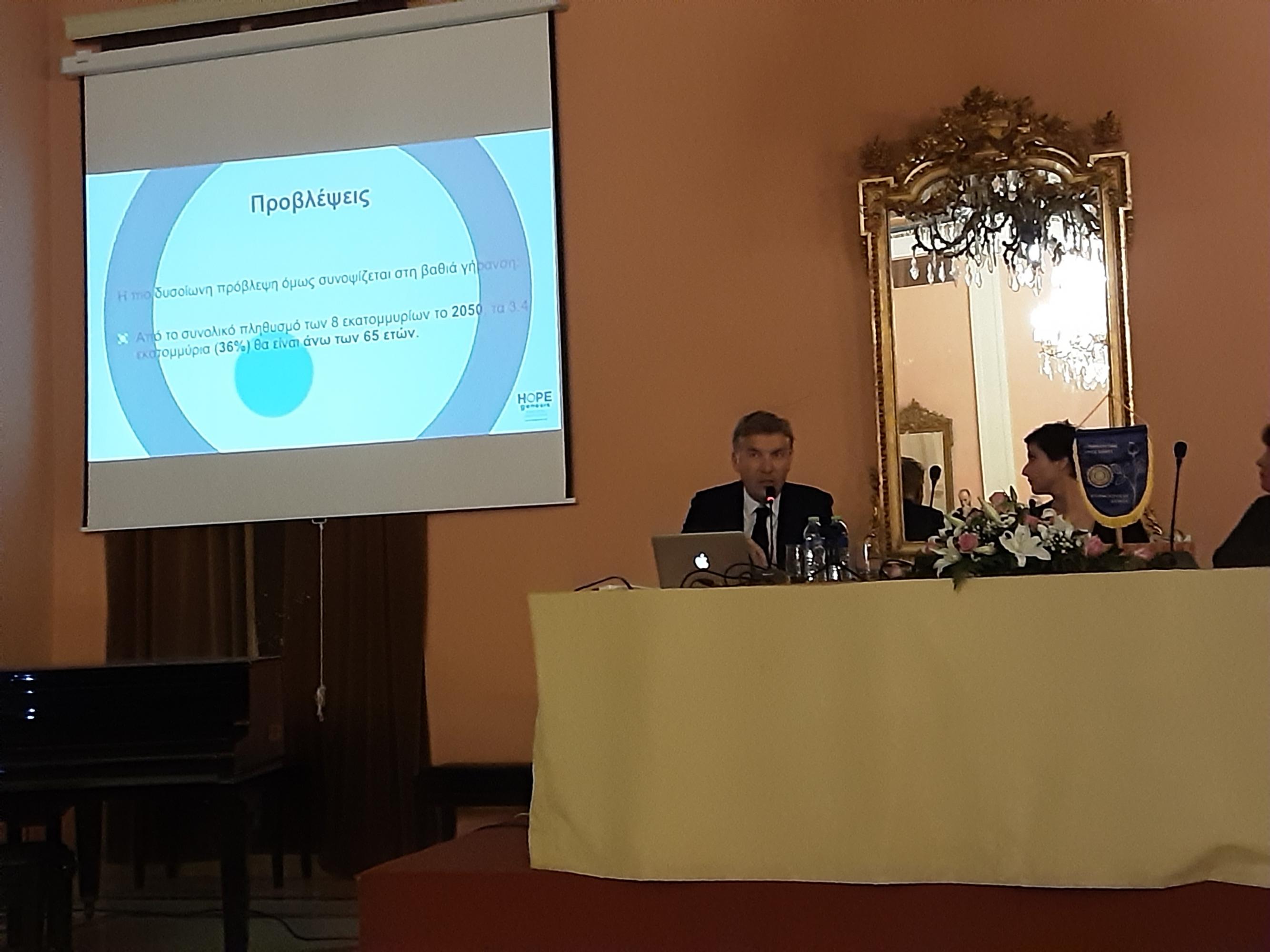 Η ομιλία του Μαιευτήρα – Γυναικολόγου – Ενδοσκοπικού Χειρουργού και προέδρου της Πρόεδρος της HOPEgenesis με τίτλο «Η δημογραφική κρίση στην Ελλάδα. Ένα μείζον εμπόδιο για την ευημερία και την ανάπτυξη» διοργανώθηκε το απόγευμα της Δευτέρας στο Πνευματικό Κέντρο Δήμου Σύρου – Ερμούπολης από τον Όμιλο Inner Wheel Σύρου.