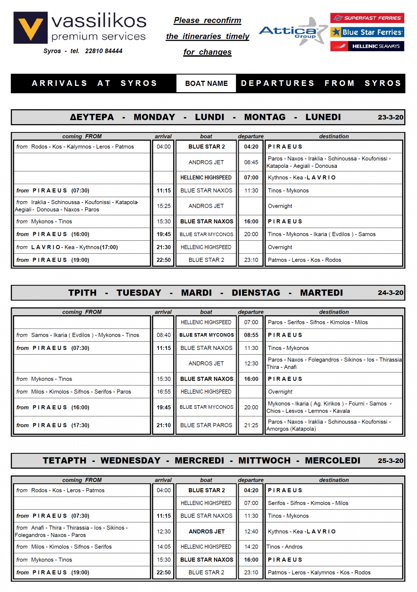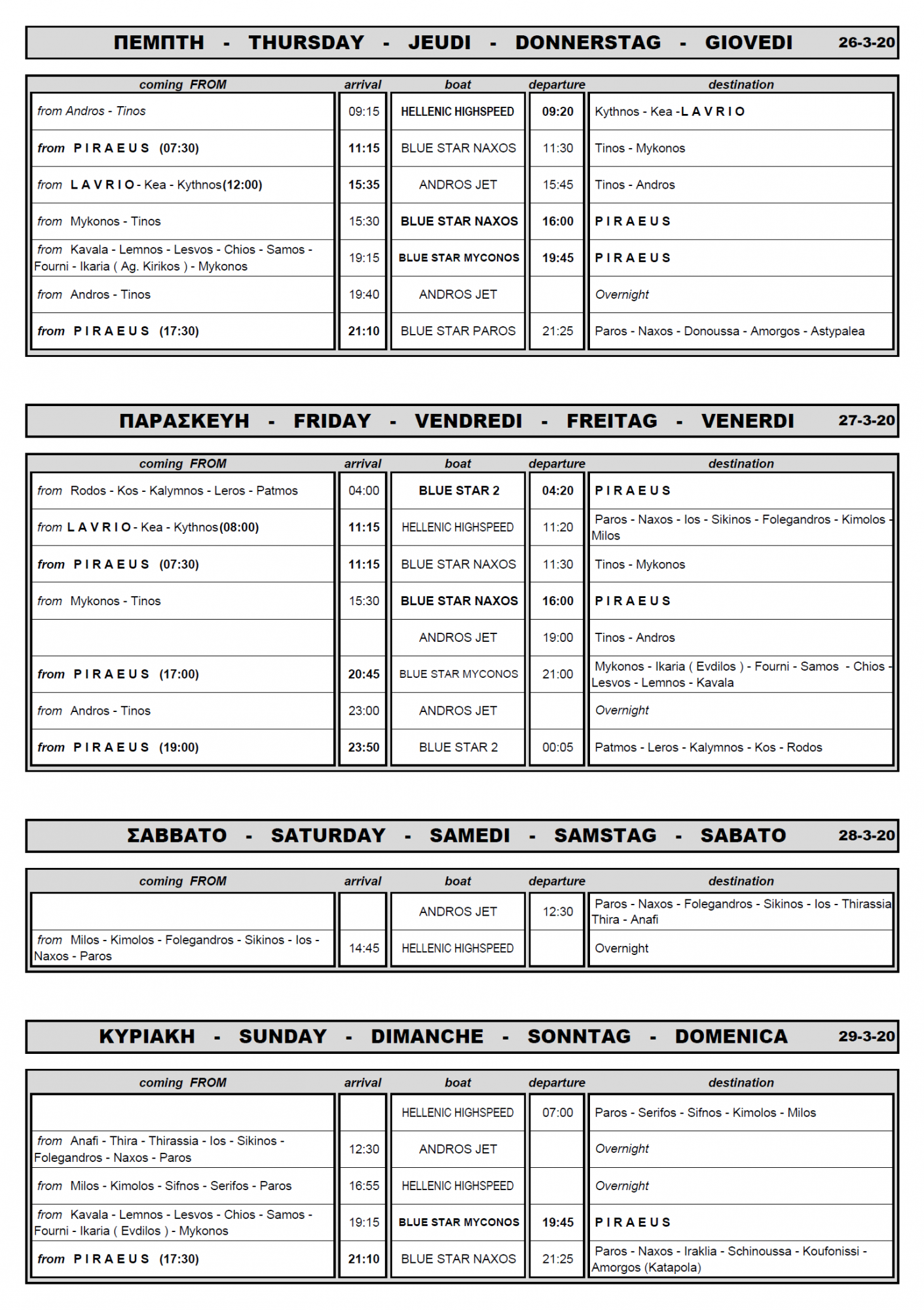 Αντιστοίχως η Blue Star διέκοψε και τα πρωινά της δρομολόγια από Πειραιά για Πάρο και Νάξο.
