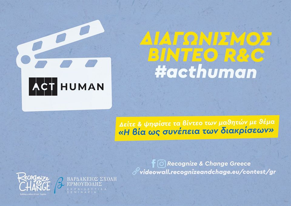 Η Ελλάδα, μέσω της Βαρδακείου Σχολής Ερμούπολης, είναι η μοναδική από τις συμμετέχουσες χώρες που κατάφερε να υλοποιήσει τις φετινές δράσεις του προγράμματος πριν από το ξέσπασμα του νέου κορωνοϊού και να προχωρήσει αισίως στο τελευταίο σκέλος, τη διεξαγωγή του διαγωνισμού #acthuman για την ανάδειξη των καλύτερων βίντεο με την υπογραφή μαθητών.