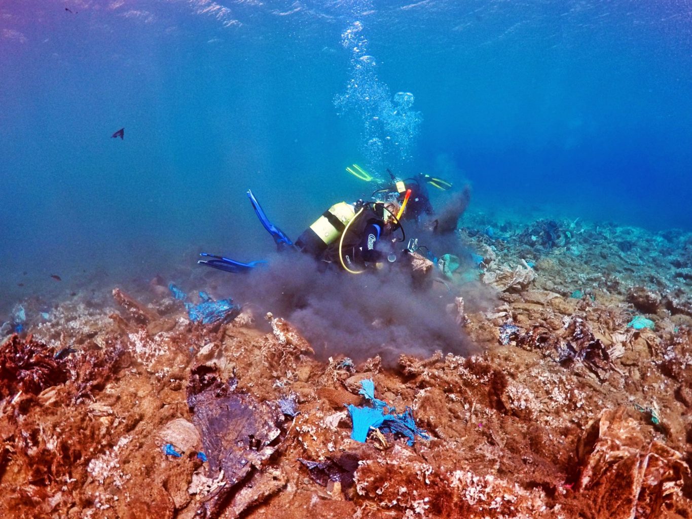Υπενθυμίζεται, ότι οι εθελοντές δύτες της Aegean Rebreath, “ανακάλυψαν” έναν ύφαλο σκουπιδιών γεμάτο πλαστικά “κοράλλια” στον κόλπο που αγκαλιάζει την παραλία Σχοινιάς της Άνδρου.