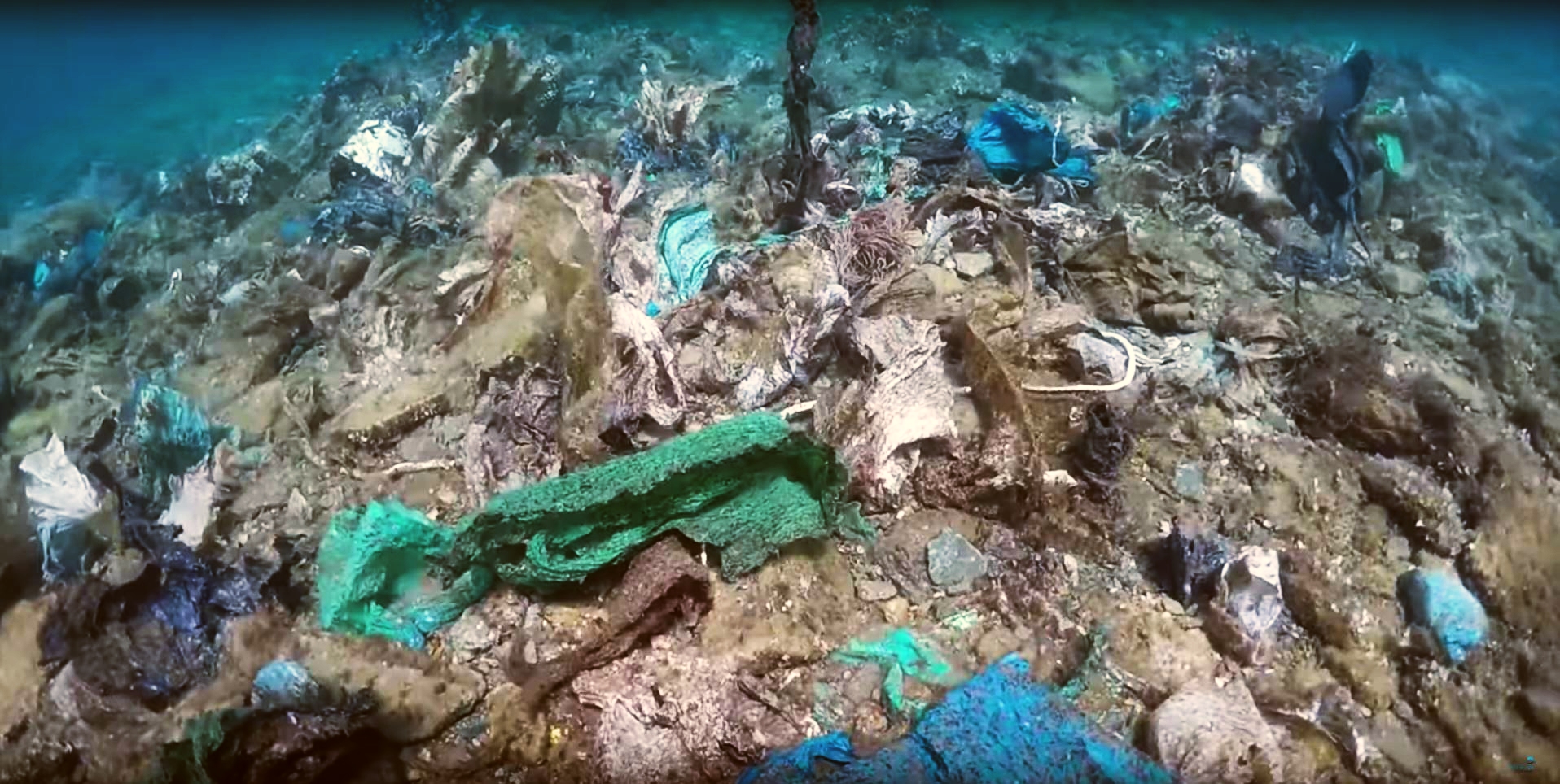 Όπως κατέγραψε η Aegean Rebreath, χιλιάδες πλαστικές σακούλες κολλημένες στον βυθό ταλαντεύονται από τα θαλάσσια ρεύματα και όγκοι από πλαστικά απορρίμματα στέκονται ακίνητοι, μαρτυρώντας μια τεράστια περιβαλλοντική καταστροφή.