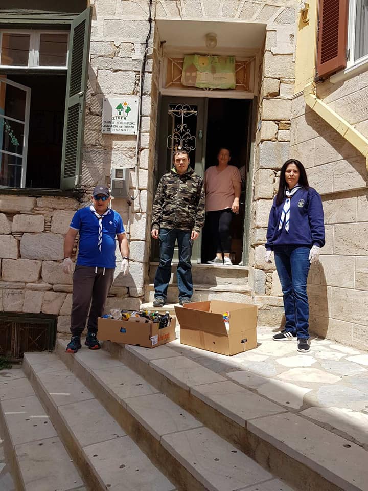 Τέλος, ανταποκρινόμενοι στο κάλεσμα στη Στέγης Ανηλίκων προς την τοπική κοινωνία, οι Πρόσκοποι Σύρου αποφάσισαν να διαθέσουν προς τη Στέγη αποθέματα τροφίμων που υπήρχαν στο Προσκοπικό Κέντρο ως εφεδρεία στο πλαίσιο της λειτουργίας της Πολιτικής Προστασίας.