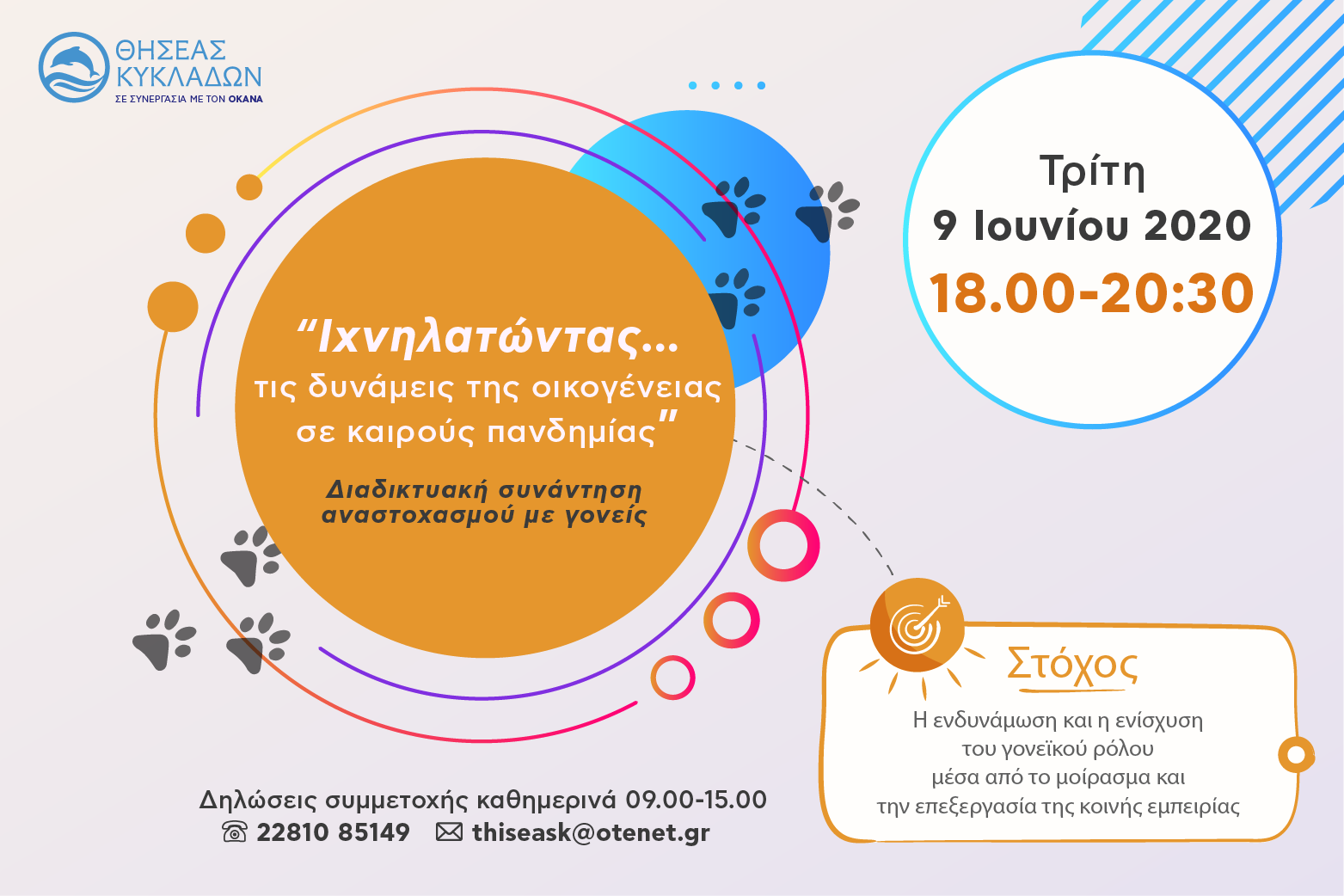 Η περίοδος της πανδημίας έφερε μεγάλες αλλαγές στην καθημερινή ζωή της οικογένειας. Για το λόγο αυτό θεωρούμε σημαντική τη δημιουργία ενός ασφαλούς “χώρου” συνάντησης, όπου ο γονιός θα ενδυναμωθεί και θα γίνει περισσότερο ενήμερος του ρόλου του και των απαιτήσεών του στην παρούσα συνθήκη, μέσα από το μοίρασμα και την επεξεργασία της εμπειρίας του.