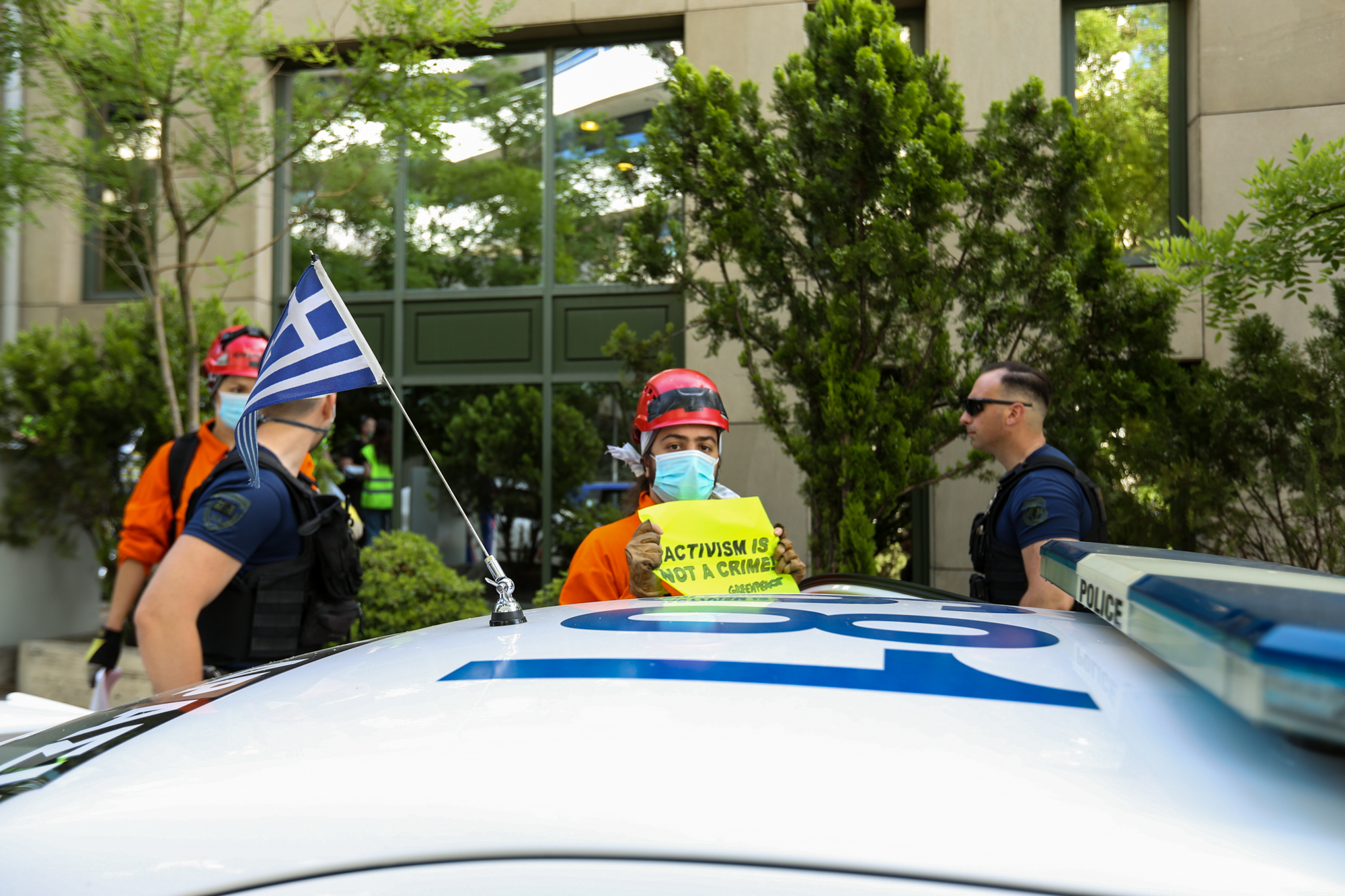 Ακτιβιστές της Greenpeace βρέθηκαν σήμερα το πρωί στο Υπουργείο Περιβάλλοντος και Ενέργειας για να στείλουν ένα ηχηρό μήνυμα στον Υπουργό, ζητώντας του να επιλέξει: “κ. Χατζηδάκη, φυσικός πλούτος ή πετρέλαιο;”. Στην προσπάθειά τους να αναρτήσουν πανό στην κεντρική πρόσοψη του κτιρίου του Υπουργείου και να εκφράσουν ειρηνικά την αντίδρασή τους στο νέο περιβαλλοντικό νόμο, η αστυνομία απάντησε με προσαγωγές 4 ακτιβιστών. Η Greenpeace, με αυτήν την ειρηνική δράση της, ενώνει τη φωνή της με χιλιάδες πολίτες από όλη τη χώρα που αντιδρούν στον νέο περιβαλλοντικό νόμο και συμμετέχουν στη σημερινή Ημέρα Δράσης[1], ο καθένας με τον δικό του ειρηνικό τρόπο. Κοινός παρονομαστής η απαίτηση από τον Υπουργό, κ. Χατζηδάκη να ξεκαθαρίσει αν θα ανταποκριθεί στον θεσμικό του ρόλο και θα προστατέψει το φυσικό περιβάλλον της χώρας ή θα συνεχίσει να υποστηρίζει ως “περιβαλλοντικό εκσυγχρονισμό” την ακόμα μεγαλύτερη υποβάθμιση του περιβάλλοντος, φιμώνοντας παράλληλα την κοινωνία που αγωνιά για το μέλλον της.