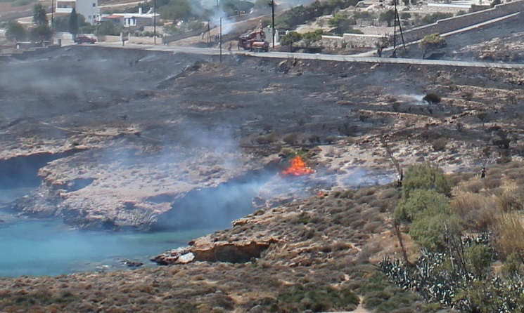 Φωτιά ξέσπασε σήμερα το μεσημέρι στην περιοχή του Μέγα Γιαλού, εκατερωθεν της μεγάλης ευθείας.